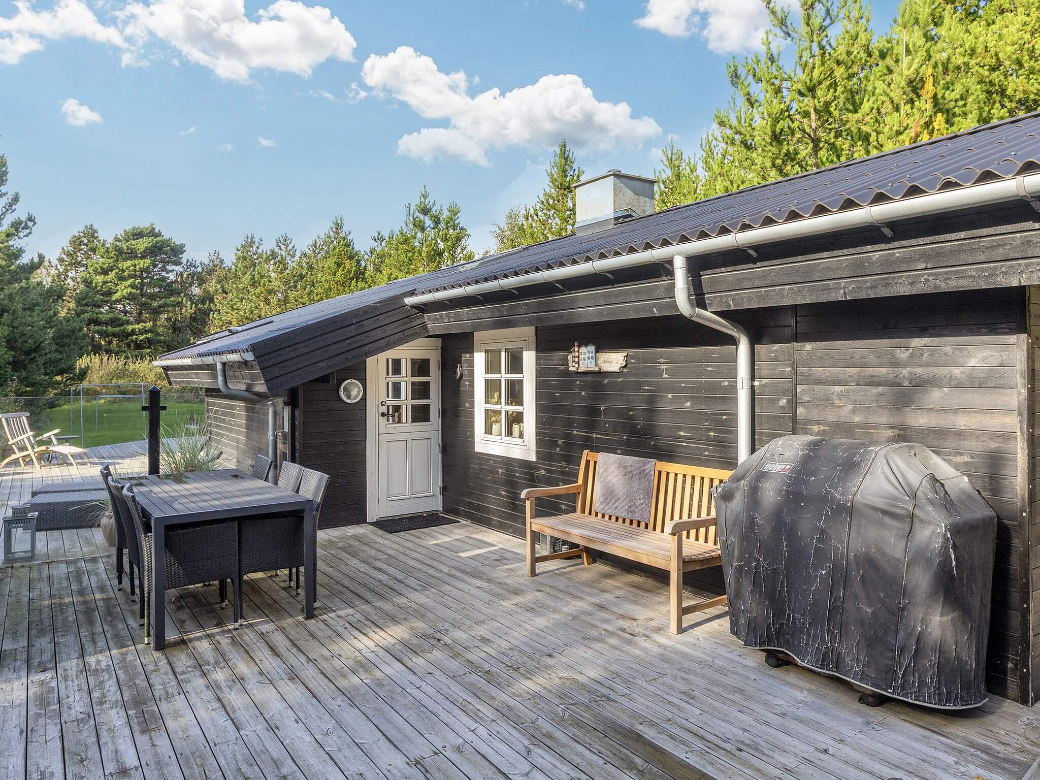 Hyggeligt sommerhus tæt på børnevenlig strand, købmand og legeplads, med stor terrasse og brændeovn.