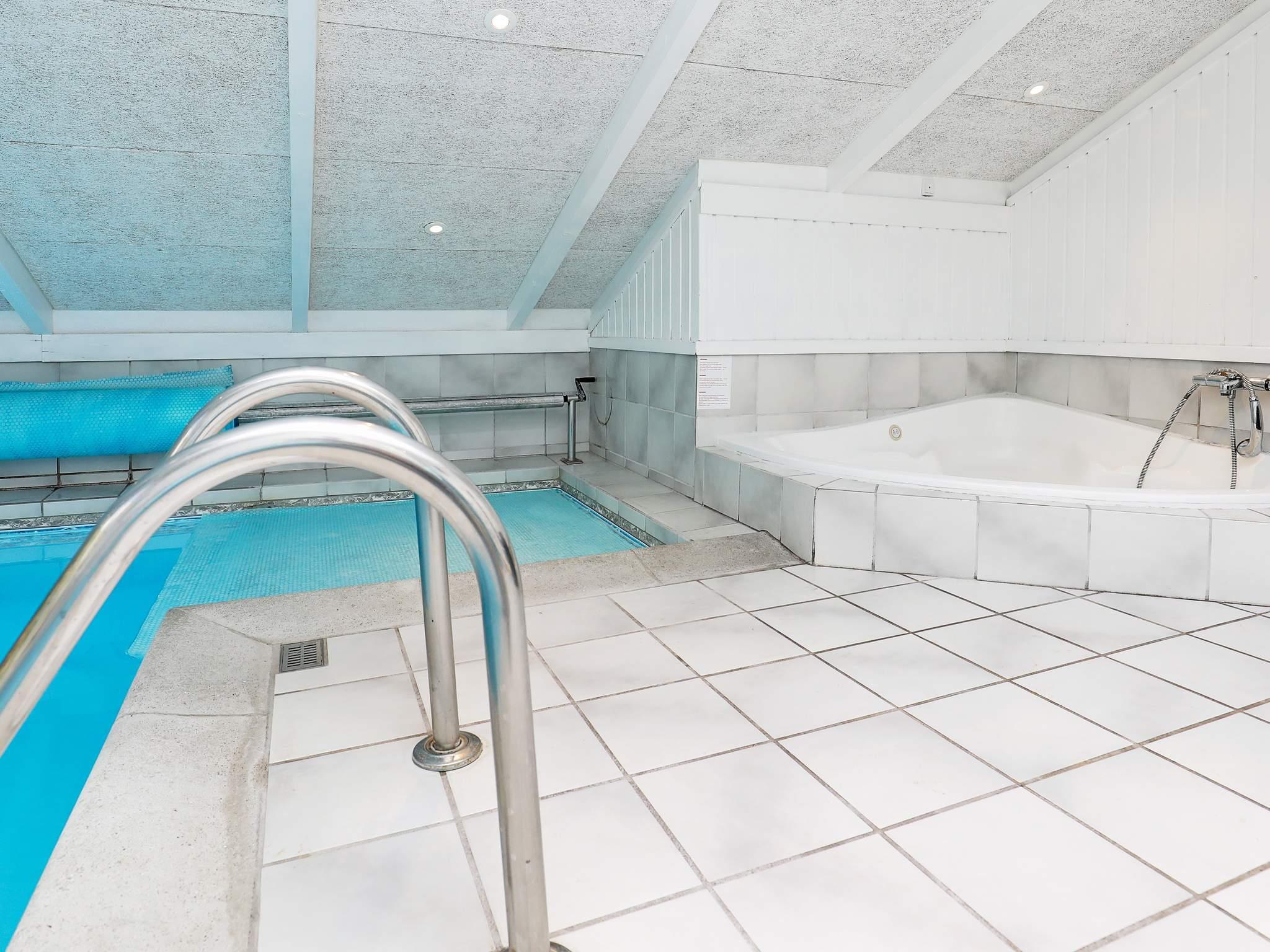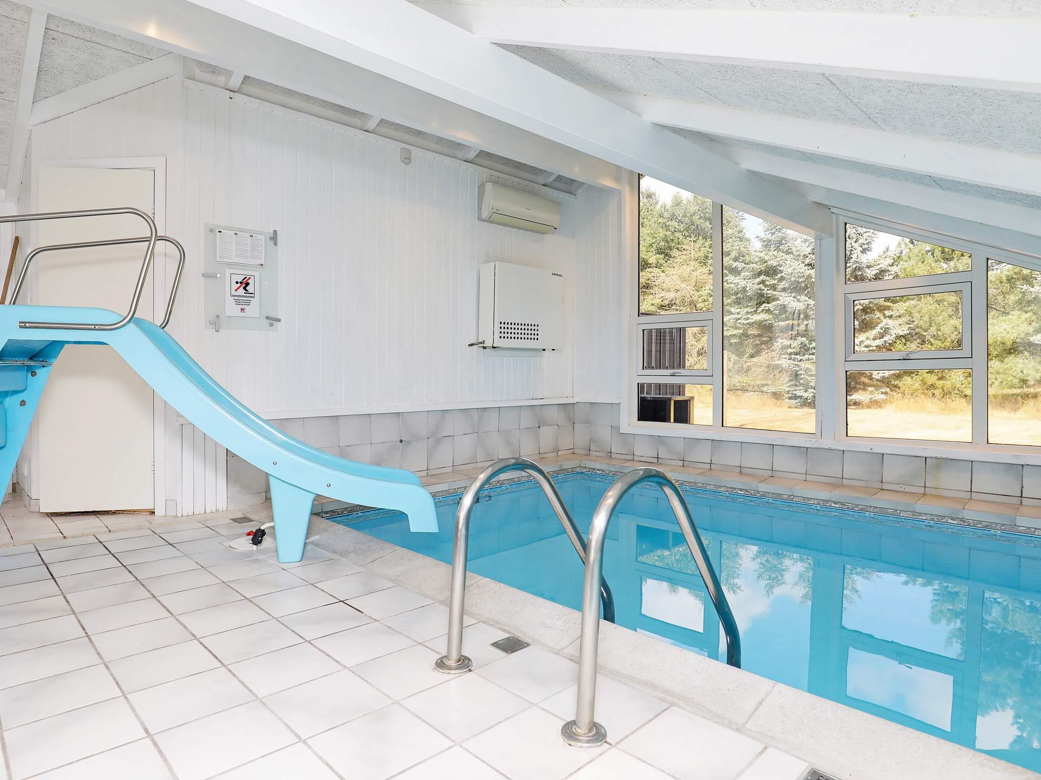 Sommerhusets poolafdeling indeholder både stor swimmingpool, stort spabad og sauna med plads til 4 personer. Swimmingpoolen er på 15 m² og med rutschebane til børnene samt en børnepool. Der er luft/vand varmepumper, som sørger for minimale omkostninger til opvarmning i poolafdelingen.