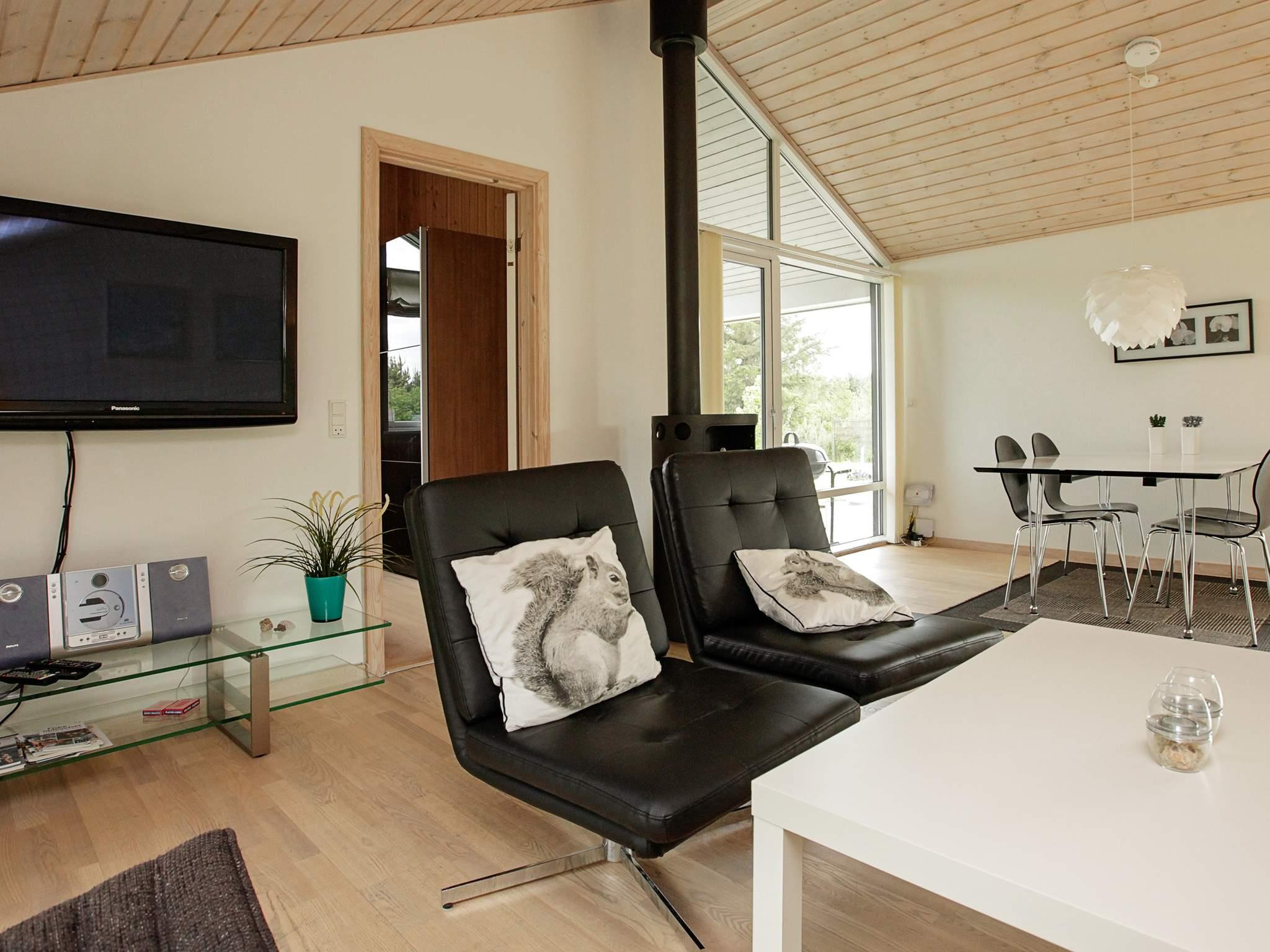 Sommerhus i særklasse beliggende i naturskønt område kun ca. 250 m fra børnevenlig strand med klitter. Huset er indrettet i moderne stil med store vinduespartier og loft til kip, der giver rummelighed og masser af lys. Der er to badeværelser, hvoraf det ene er med spabad og sauna. Begge badeværelser samt entréen har gulvvarme. Åbent køkken, stue med brændeovn. Fra stuen er der udgang til en overdækket og åben terrasse. I huset er der yderligere tre gode værelser. I haven ligger en skøn pavillon, hvor I kan sidde og nyde naturen og se aftensolen gå ned. På den store grund er der god plads til hele familiens udfoldelser eller hygge med mad over bålet.