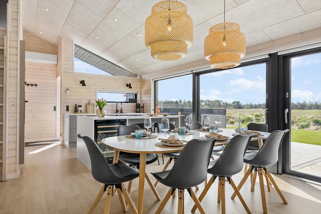Der er virkelig taget højde for, at du og de andre feriegæster skal få det dejligt her i huset: Alle rum er lyse og velindrettede, og ikke bare udsigten til naturen, men også indeklimaet er fantastisk. Et smukt køkken ligger i åben forbindelse med stuen, så du kan nyde de indendørs hyggestunder i nærheden af dine kære – også selvom nogle af jer er i gang med aftensmaden og andre spiller spil, leger eller løser krydsogtværser. Når det er ved at være sengetid, har I tre gode soveværelser at fordele jer på. Planløsningen byder også på to badeværelser, og alt i alt passer huset glimrende til syv personer.