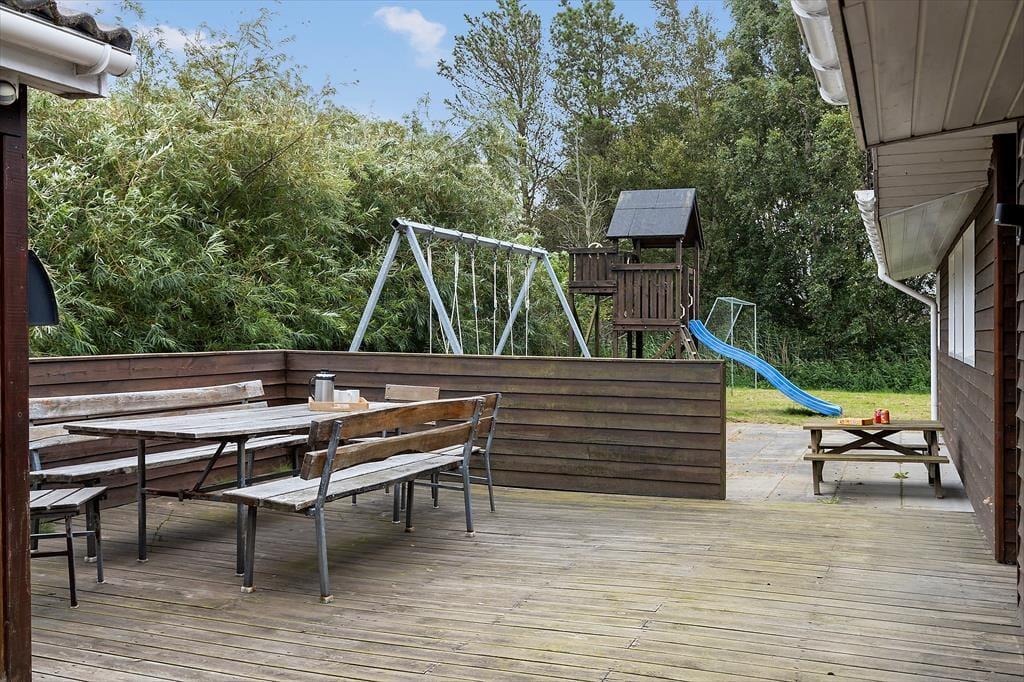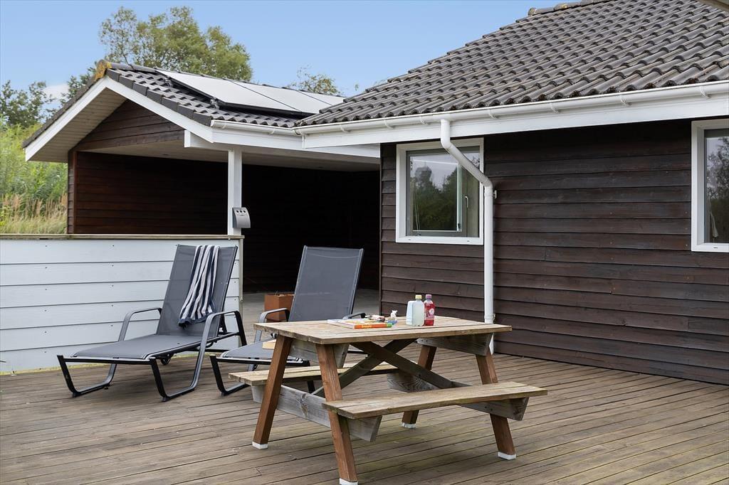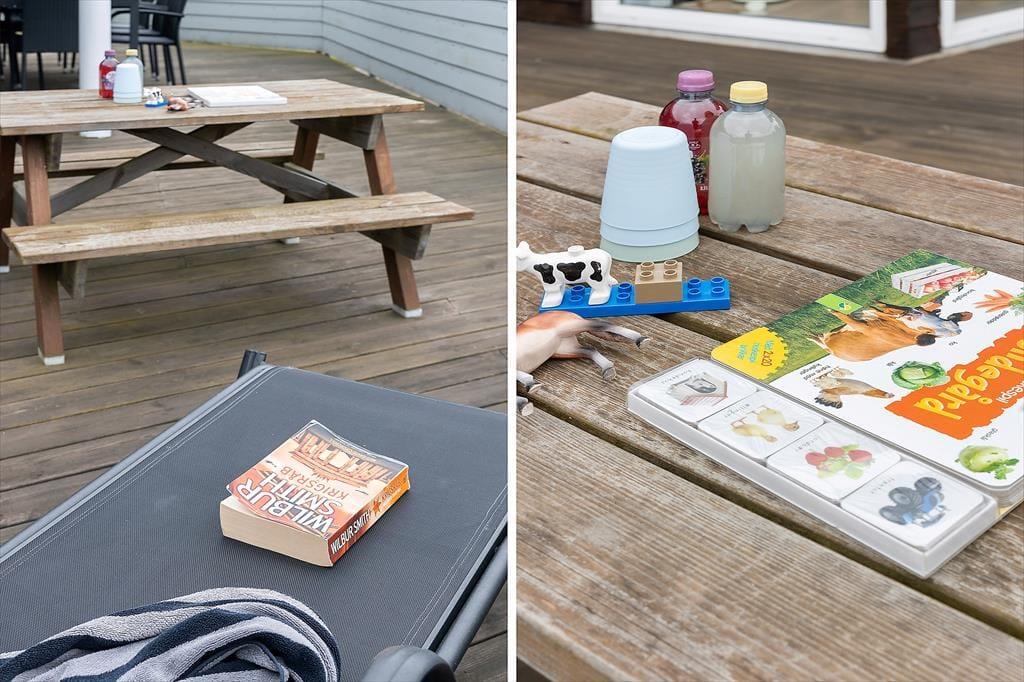 Når solen skinner, og vinden hvisker i træerne, er det svært at forestille sig et skønnere sted at være end ude på terrassen. Sommerhusets uderum er nemlig skabt til afslapning og samvær – uanset om du har lyst til at nyde morgenkaffen i ro og mag, lade børnene lege i haven eller samle familien til grillhygge, når dagen går på hæld. Den velanlagte terrasse inviterer til mange timers udeliv, og på lune sommeraftener er det oplagt at blive siddende længe, mens duggen falder, og stjernerne tændes én efter én på himlen over Bratten. Omgivelserne er grønne og fredelige, og selv på en blæsende dag er det muligt at finde læ og nyde den friske luft. Her får du fornemmelsen af at være i ét med naturen – uden at gå på kompromis med komforten.