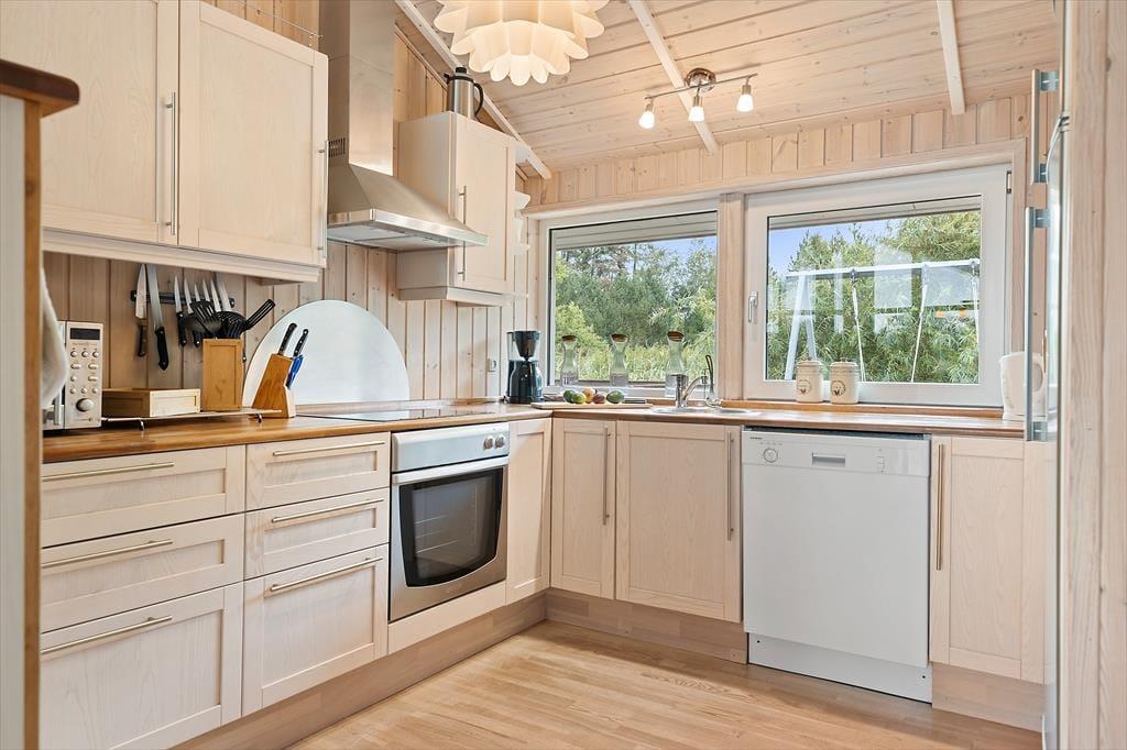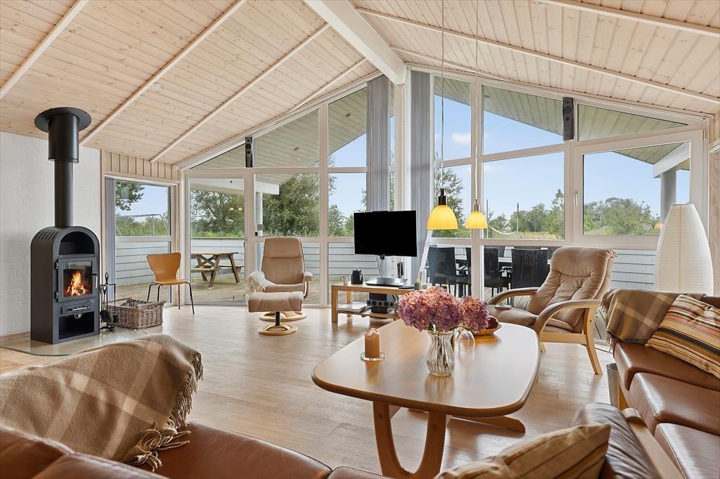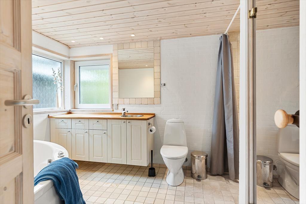 Det første, du bemærker, når du træder indenfor, er husets lyse og imødekommende atmosfære. Her er masser af plads at brede sig på, og planløsningen gør det nemt for både familier og vennegrupper at finde sig godt til rette. Det centrale opholdsrum samler køkken, spiseplads og stue i ét, og det er her, dagens rytme finder sin naturlige puls – med morgenmad ved spisebordet, kortspil i sofaen og fælles madlavning i det åbne køkken, mens snakken går. Husets to badeværelser gør det nemt og bekvemt, også når I er flere af sted, og det er en detalje, I hurtigt vil sætte pris på – særligt på de travle feriemorgener. Den velgennemtænkte indretning skaber en følelse af tryghed og komfort, og det er nemt at finde sin egen lille krog, hvor man kan læse en bog, tage en middagslur eller bare nyde feriestemningen.