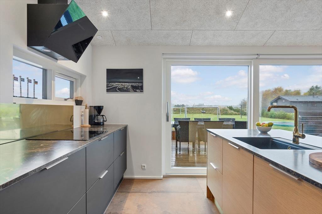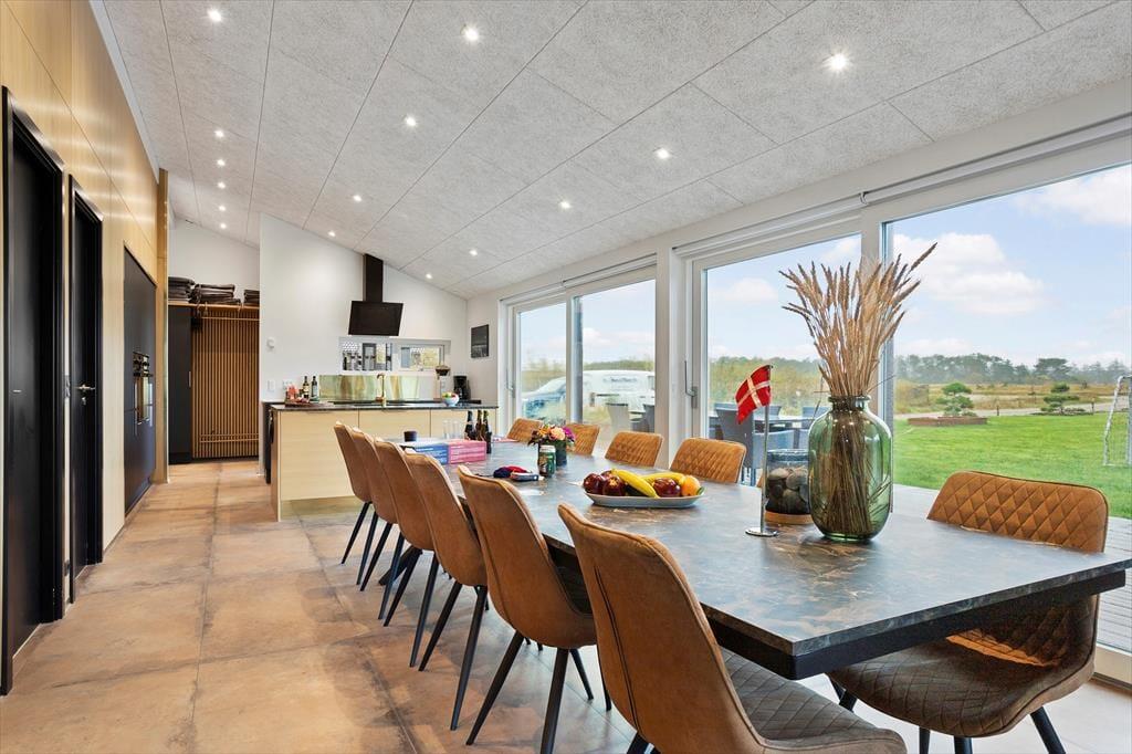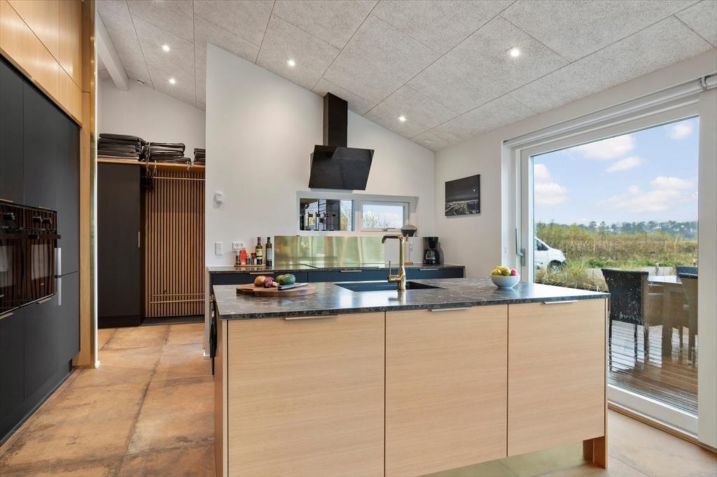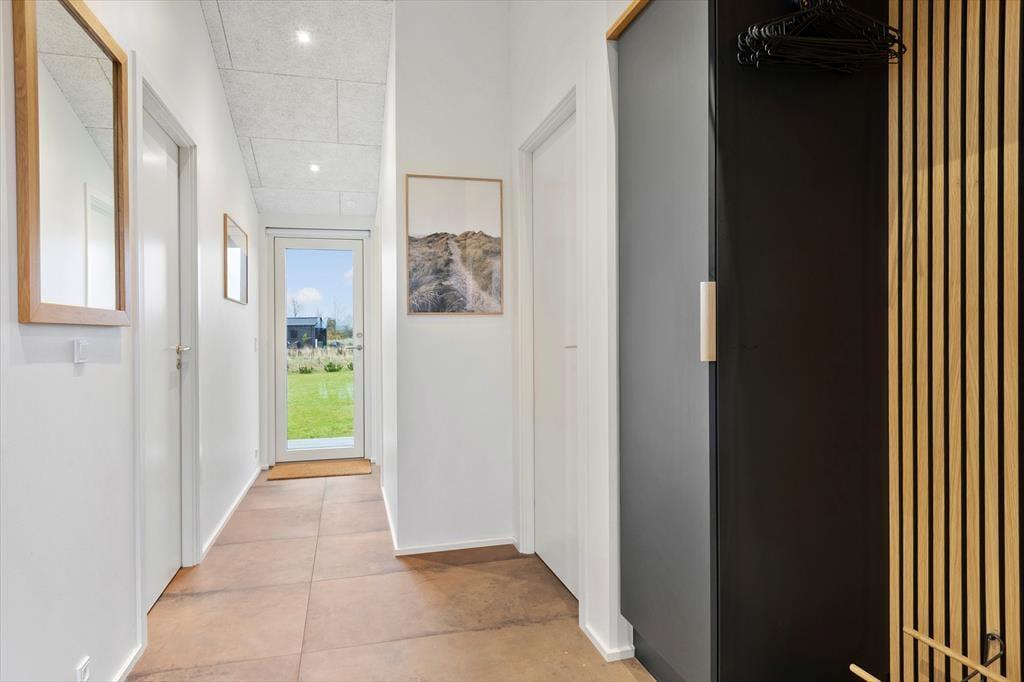 Når du træder ind i sommerhuset, mærker du straks den lyse og luftige stemning, der kendetegner huset. Det store, åbne opholdsrum er husets naturlige samlingspunkt – her smelter stue og køkken sammen i et moderne og funktionelt design, hvor alle kan samles om madlavning, måltider eller hyggelige aftener med spil og film. De store vinduespartier inviterer det særlige nordjyske lys indenfor og giver udsigt til den grønne natur, mens den gode akustik og den gennemtænkte indretning skaber ro og balance i rummet. Indretningen er moderne og smagfuld med fokus på komfort og kvalitet. I de fire soveværelser er der tænkt på gode senge og skabsplads, og de to flotte badeværelser har både gulvvarme og vaskefaciliteter, så ferien bliver så bekvem som muligt. Hele huset er desuden godt isoleret, hvilket betyder lave energiudgifter og et behageligt indeklima året rundt.