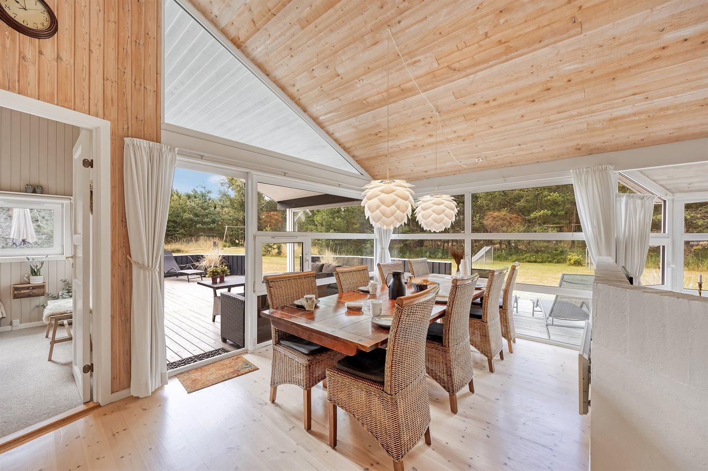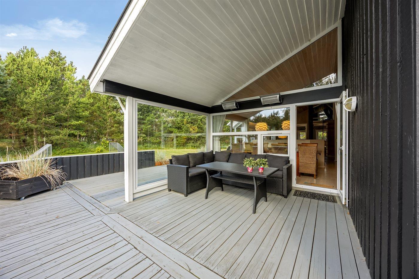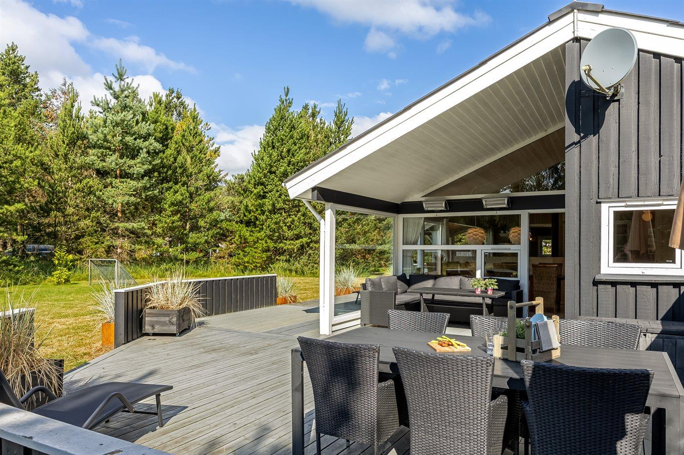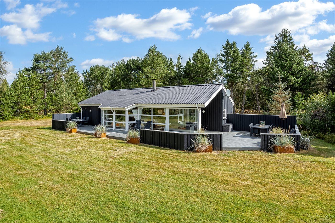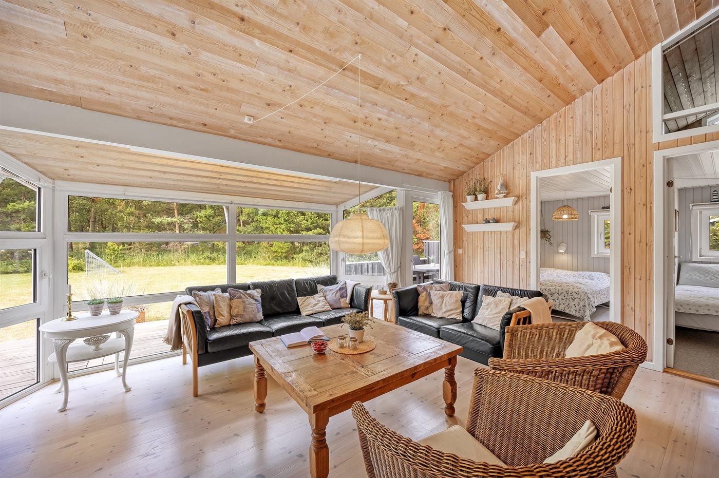 Velholdt sommerhus tæt på børnevenlig strand med spa, sauna, stor terrasse og naturgrund.