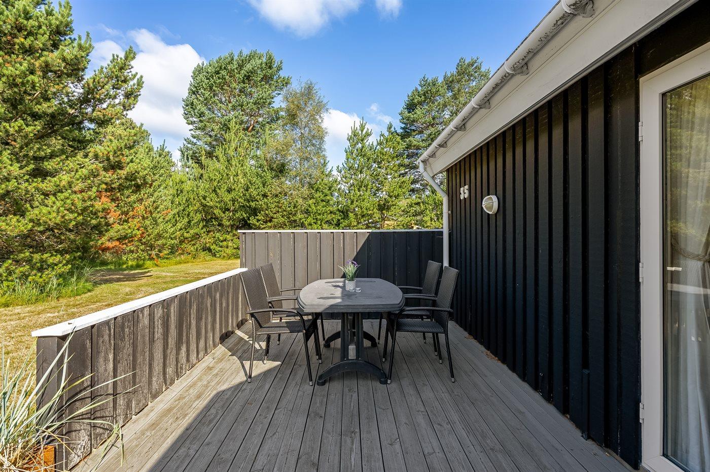 Ferieboligen er beliggende på en 2994 m² stor naturgrund. Der er 300 m til havet. Nærmeste forretning er beliggende i en afstand af 200 m. Til ferieboligen hører 100 m² terrasseareal. Desuden er der 15 m² overdækket terrasse. Sandkasse. Parkering ved ferieboligen.
