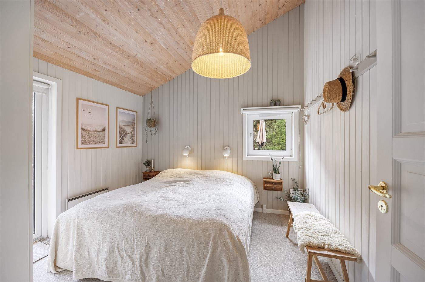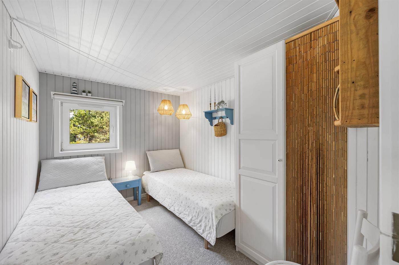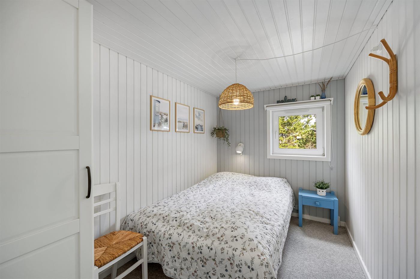 Der er i alt 3 soveværelser. Sovepladserne fordeler sig på: 6 sovepladser i dobbeltsenge. 2 sovepladser på madrasser. 2 af disse sovepladser befinder sig på husets hems. Derudover er der 1 stk. barneseng.