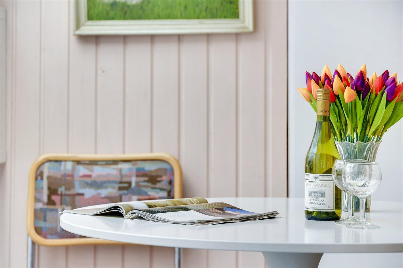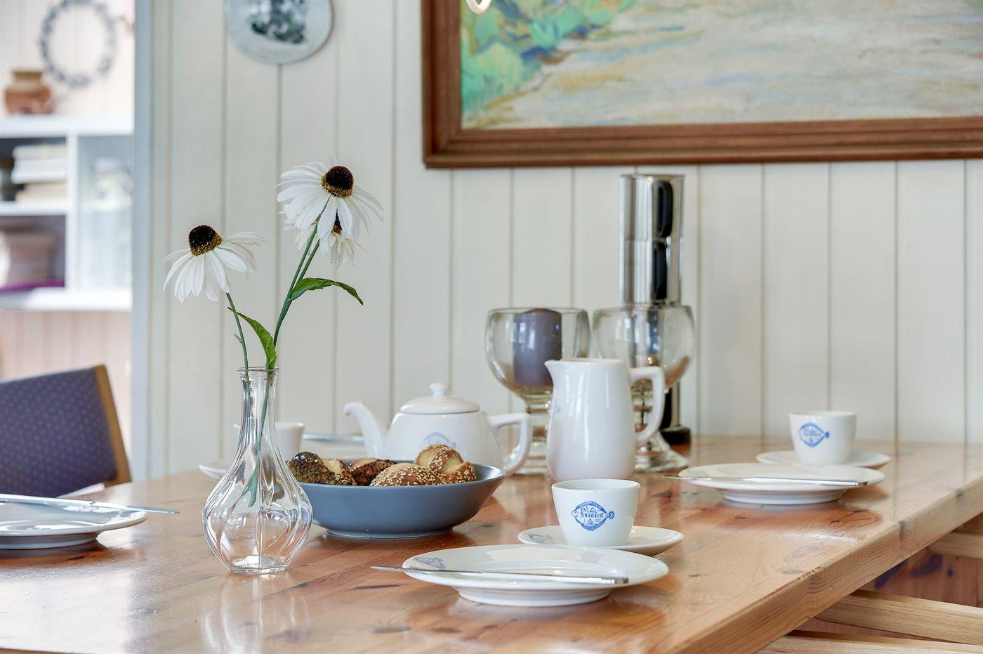 Køkkenet er udstyret med 1 køleskab. Der er 4 keramiske kogeplader, varmluftovn, mikrobølgeovn samt opvaskemaskine.
