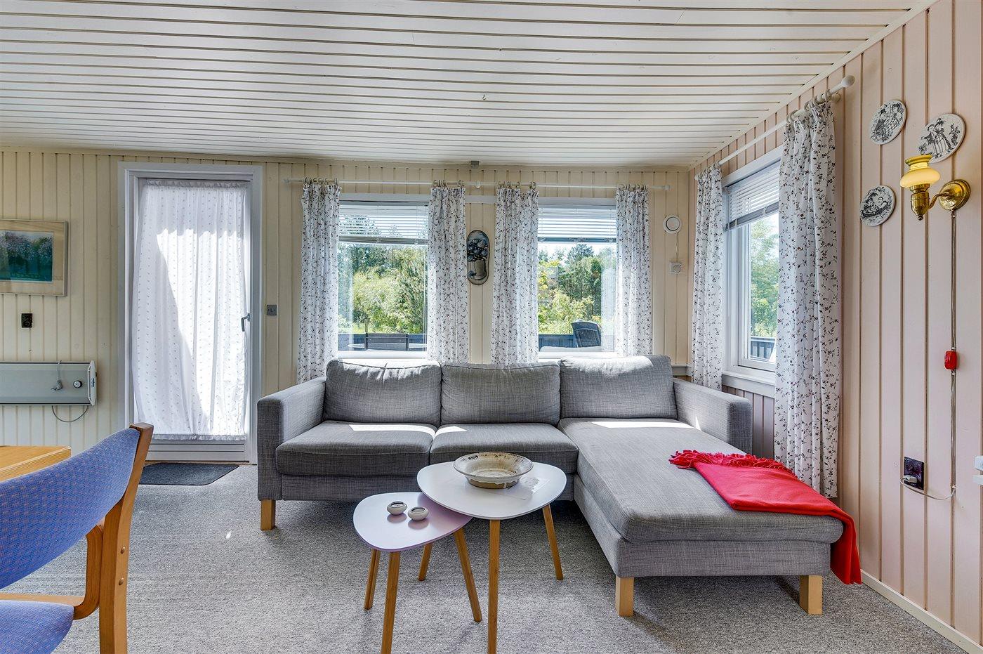 Sommerhus beliggende på en stor, lukket og ugenert grund tæt på børnevenlig badestrand.