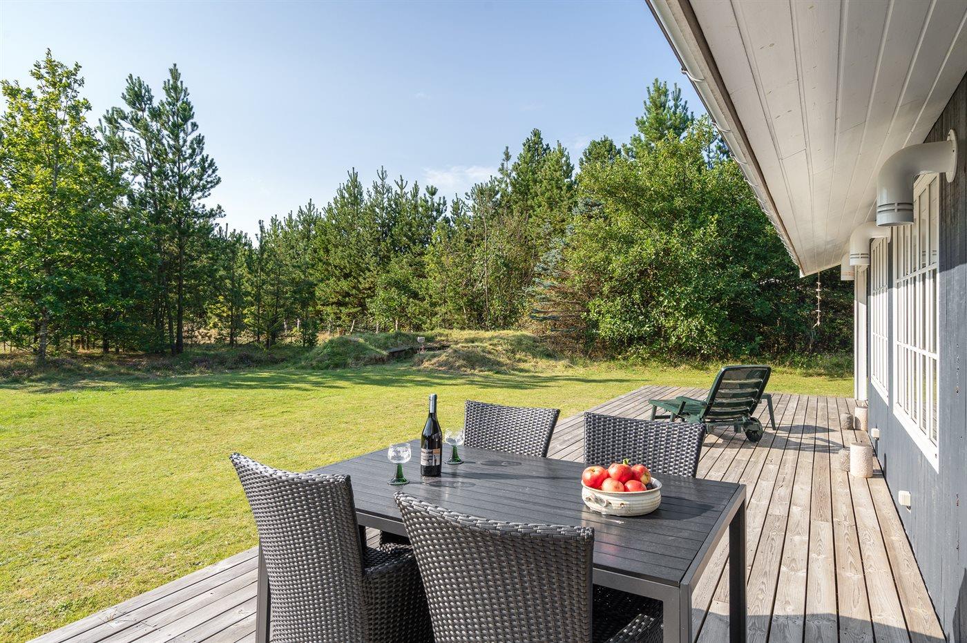 Ferieboligen er beliggende på en 2500 m² stor naturgrund. Der er 100 m til havet. Nærmeste forretning er beliggende i en afstand af 50 m. Til ferieboligen hører 60 m² terrasseareal. Ligeledes er der adgang til udestue. Parkering ved ferieboligen.