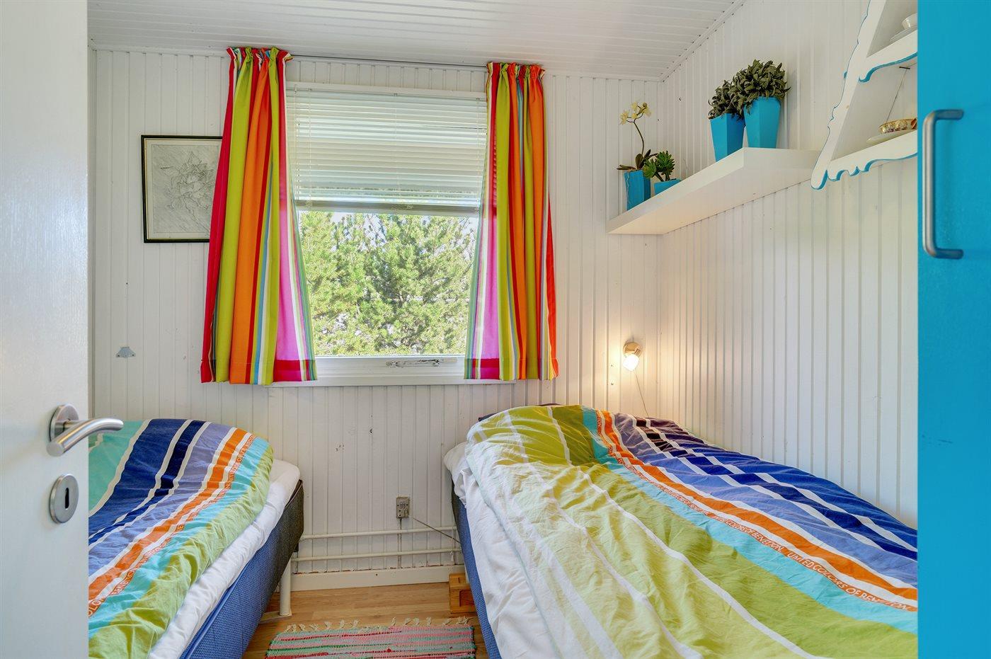 Der er i alt 4 soveværelser. Sovepladserne fordeler sig på: 2 sovepladser i dobbeltseng. 3 sovepladser i enkeltsenge. 1 soveplads i sovesofa (enkelt).