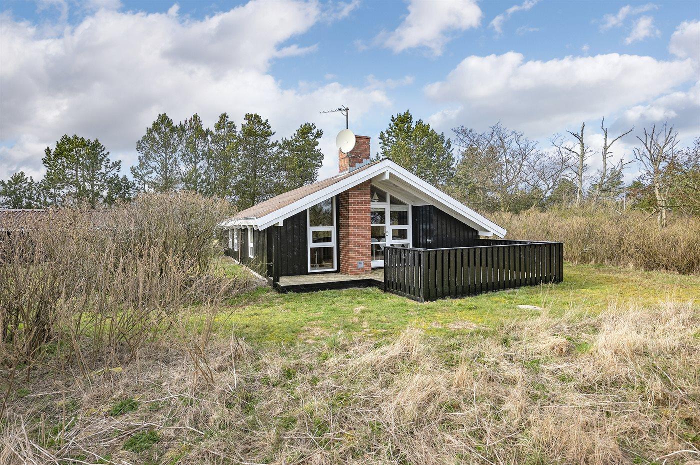 Ferieboligen er beliggende på en 1200 m² stor naturgrund. Der er 350 m til havet. Nærmeste forretning er beliggende i en afstand af 2000 m. Til ferieboligen hører 40 m² terrasseareal. Desuden er der 5 m² overdækket terrasse. Der er carport til rådighed. Parkering ved ferieboligen.