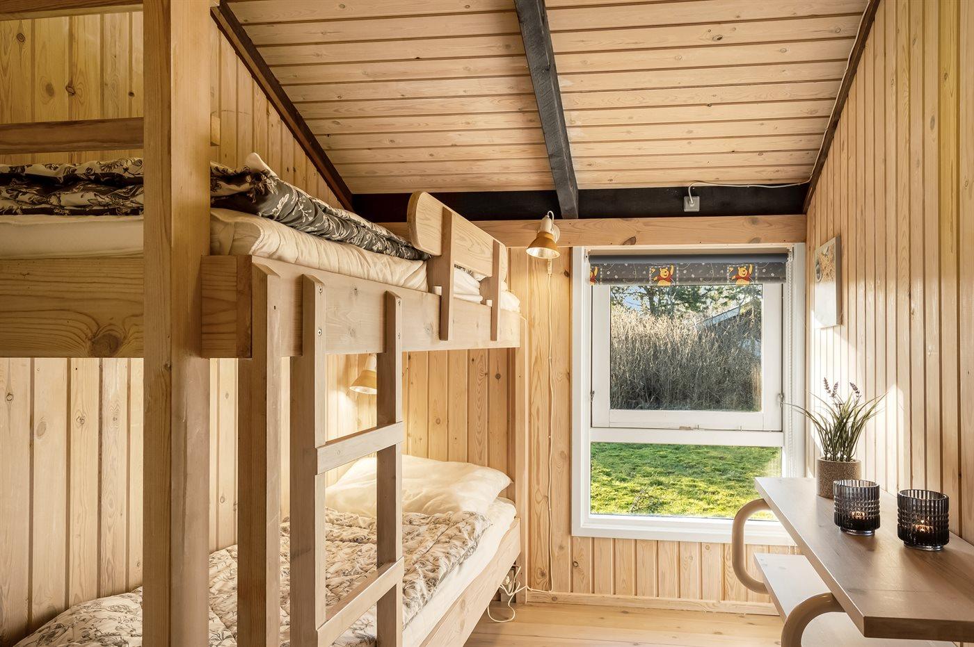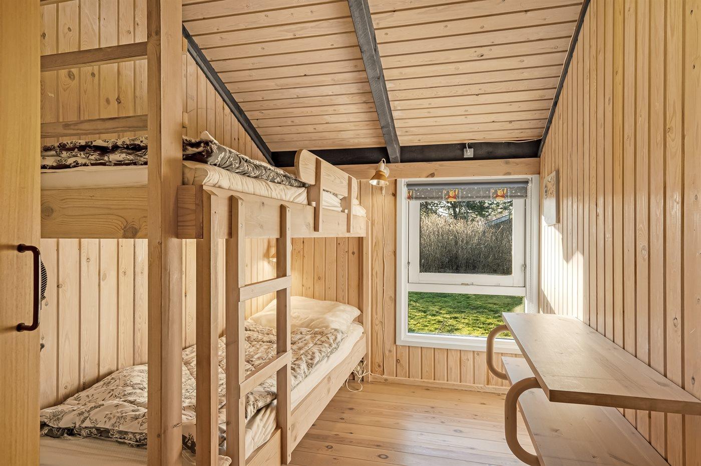 Der er i alt 3 soveværelser. Sovepladserne fordeler sig på: 2 sovepladser i dobbeltseng. 2 sovepladser i enkeltsenge. 2 sovepladser i køjeseng.