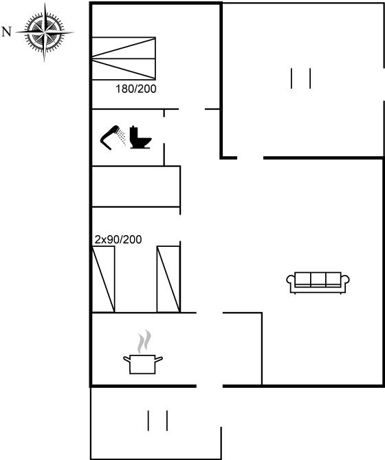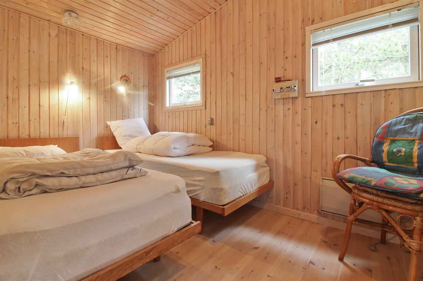 Der er i alt 2 soveværelser. Sovepladserne fordeler sig på: 2 sovepladser i dobbeltseng. 2 sovepladser i enkeltsenge. Derudover er der 1 stk. barneseng.