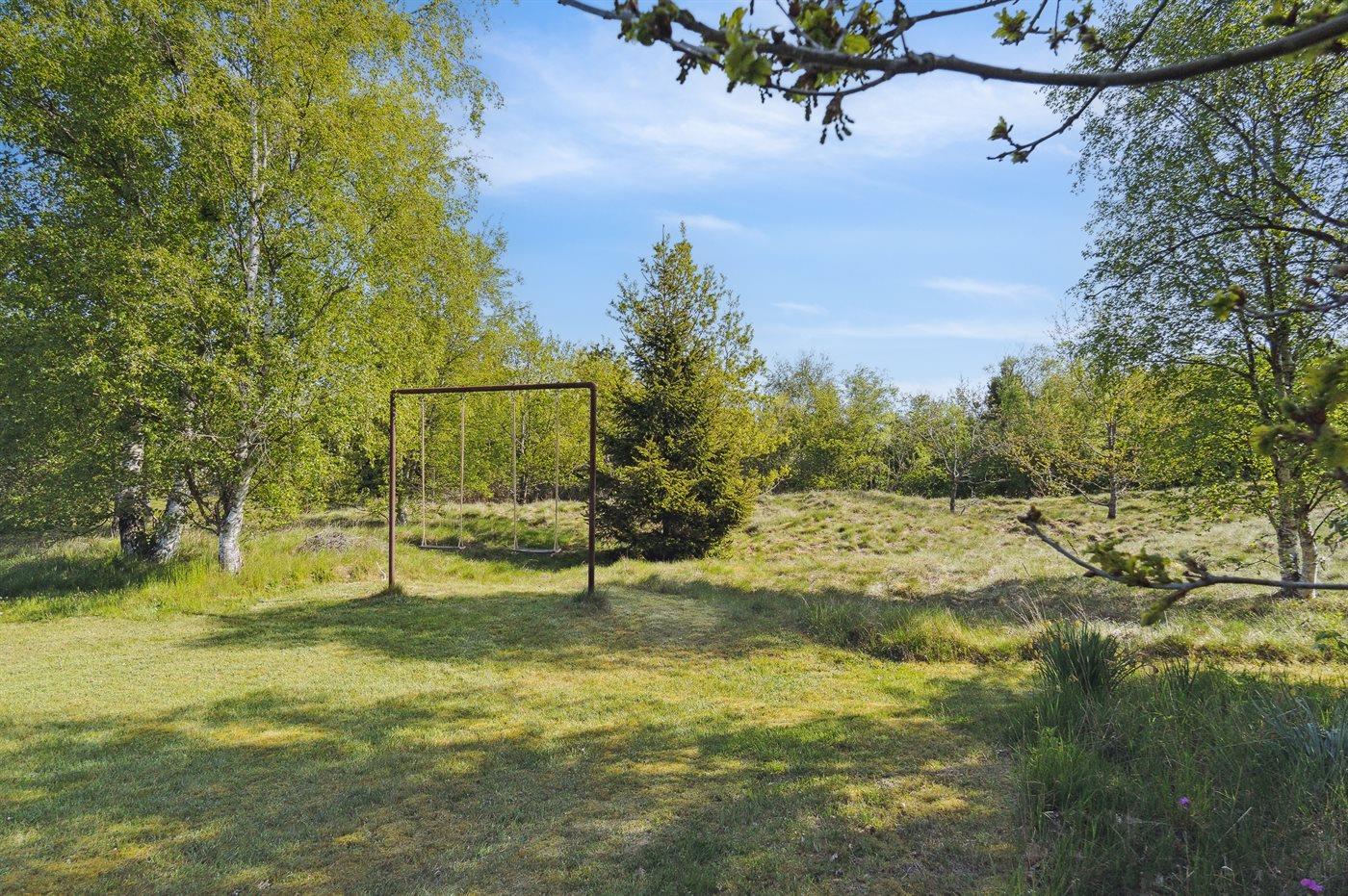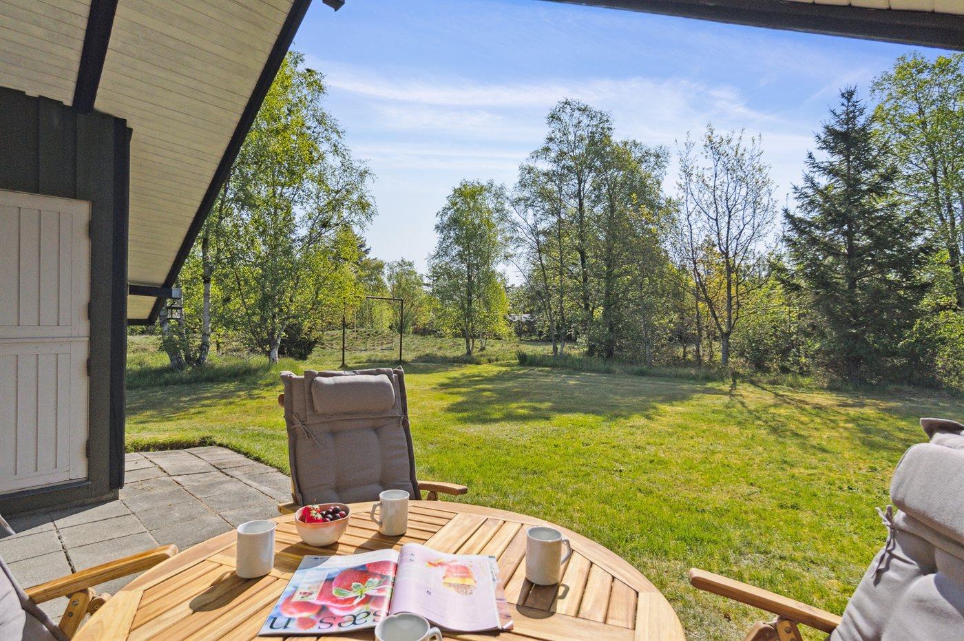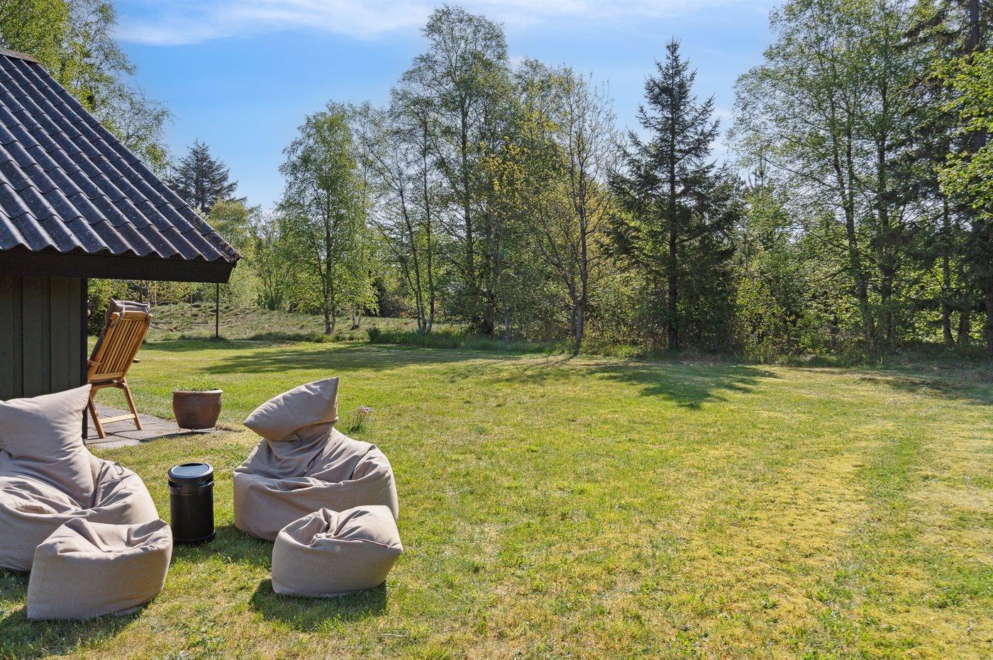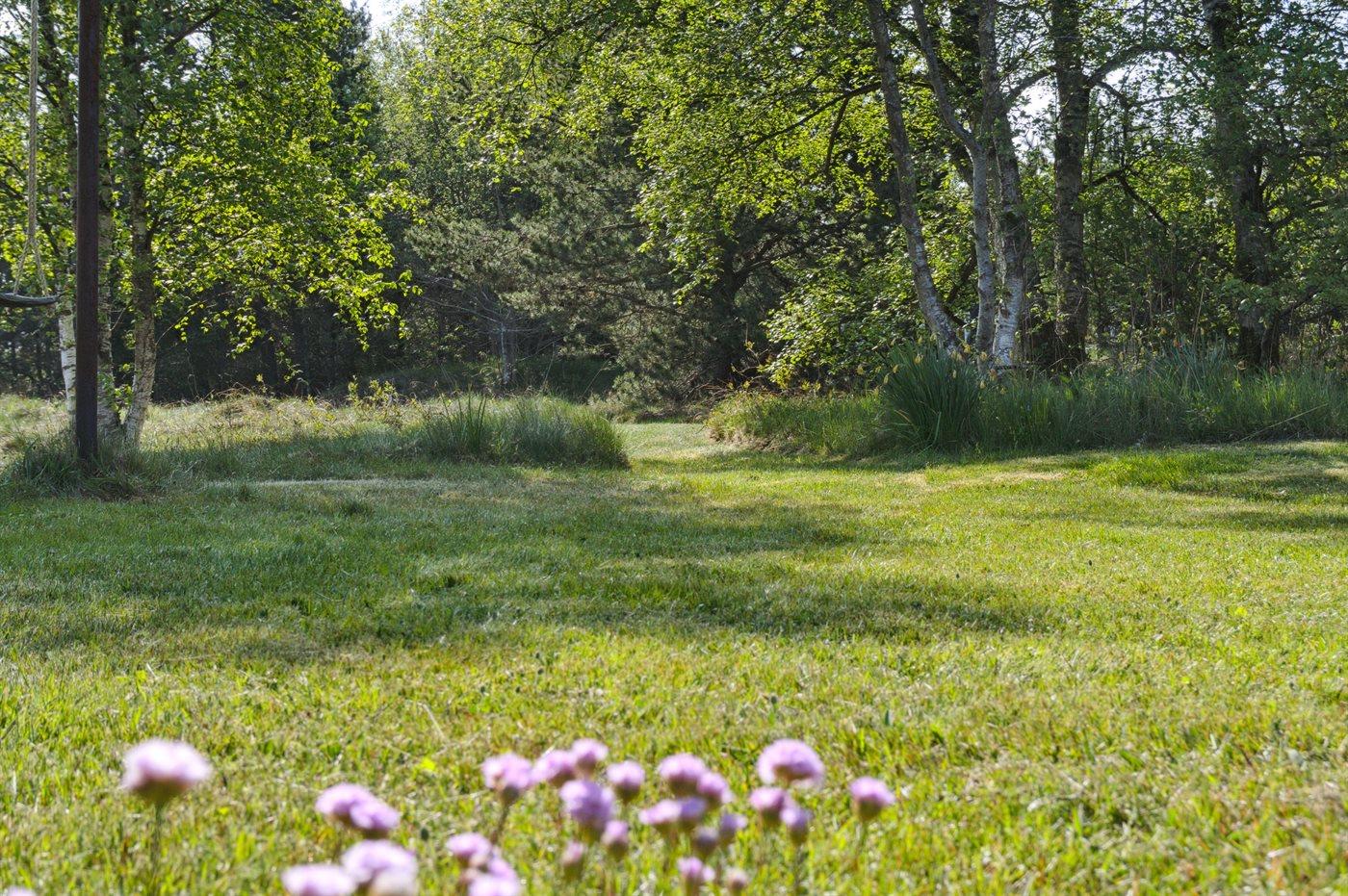 Ferieboligen er beliggende på en 2600 m² stor naturgrund. Der er 600 m til havet. Nærmeste forretning er beliggende i en afstand af 4000 m. Der er en golfbane i en afstand af 8000 m. Desuden er der 12 m² overdækket terrasse. Til ferieboligen hører åbent terrasseareal. Gynge. Der ligger en legeplads i en afstand af 1000 m. Grill til rådighed. Der er installeret stik til opladning af elbil. Med 11 kW ladeeffekt. Parkering ved ferieboligen.