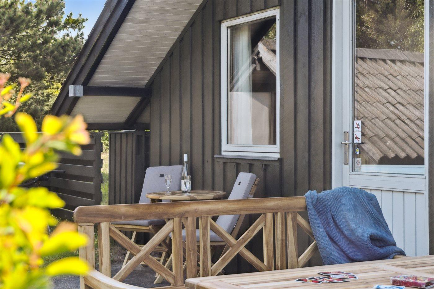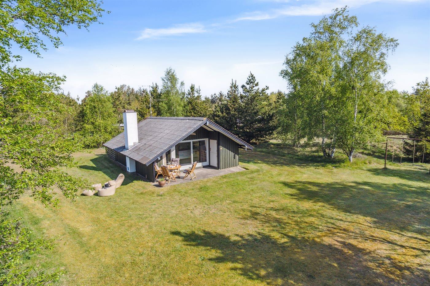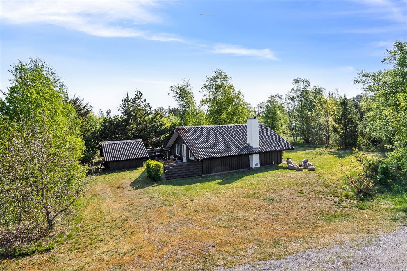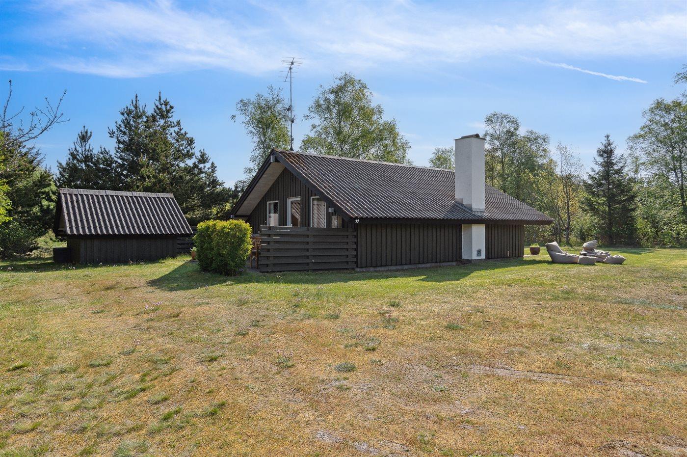 Ferieboligen er beliggende på en 2600 m² stor naturgrund. Der er 600 m til havet. Nærmeste forretning er beliggende i en afstand af 4000 m. Der er en golfbane i en afstand af 8000 m. Desuden er der 12 m² overdækket terrasse. Til ferieboligen hører åbent terrasseareal. Gynge. Der ligger en legeplads i en afstand af 1000 m. Grill til rådighed. Der er installeret stik til opladning af elbil. Med 11 kW ladeeffekt. Parkering ved ferieboligen.