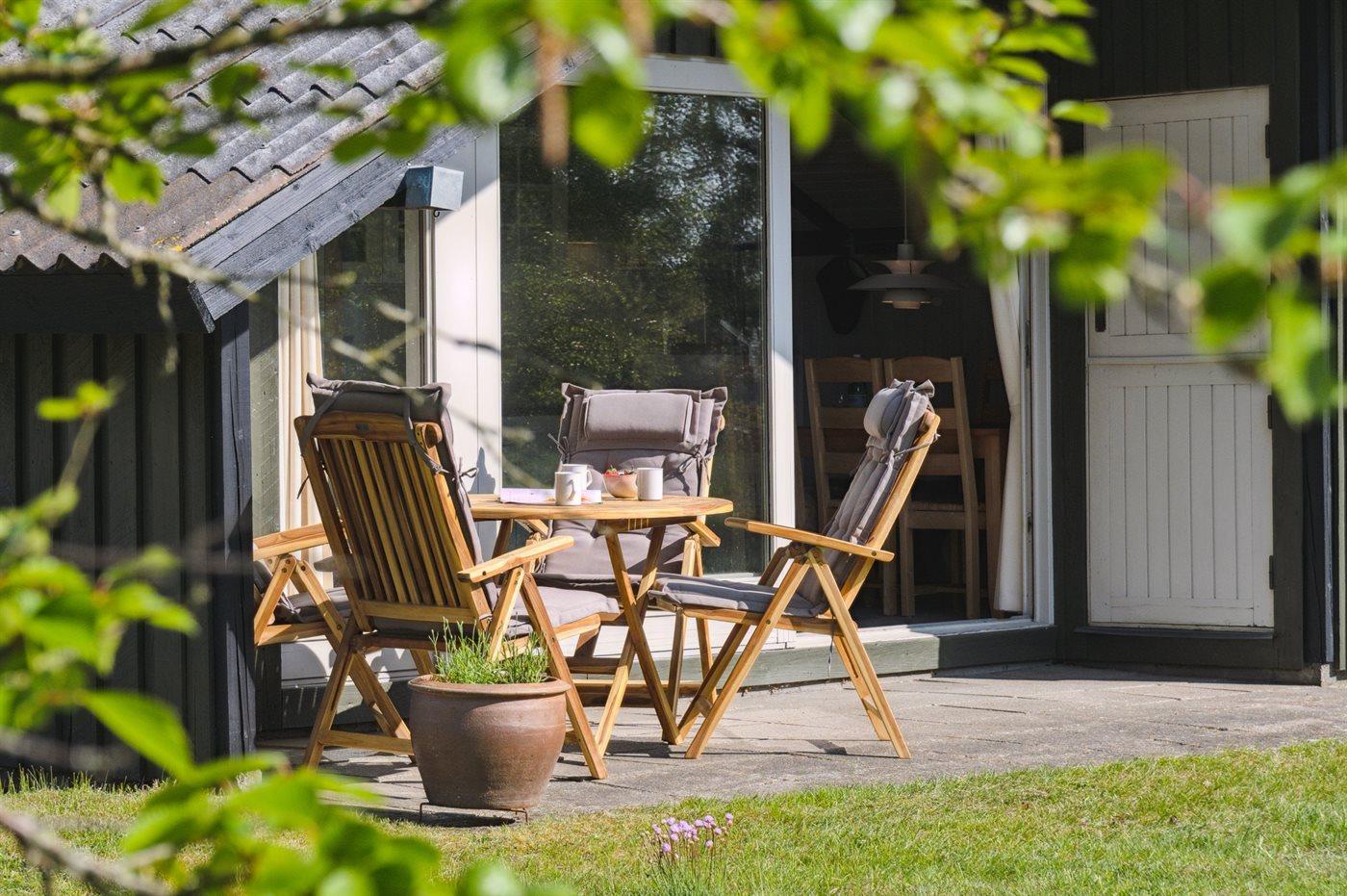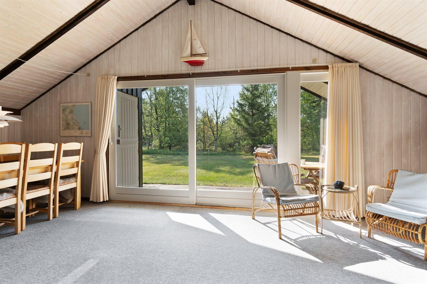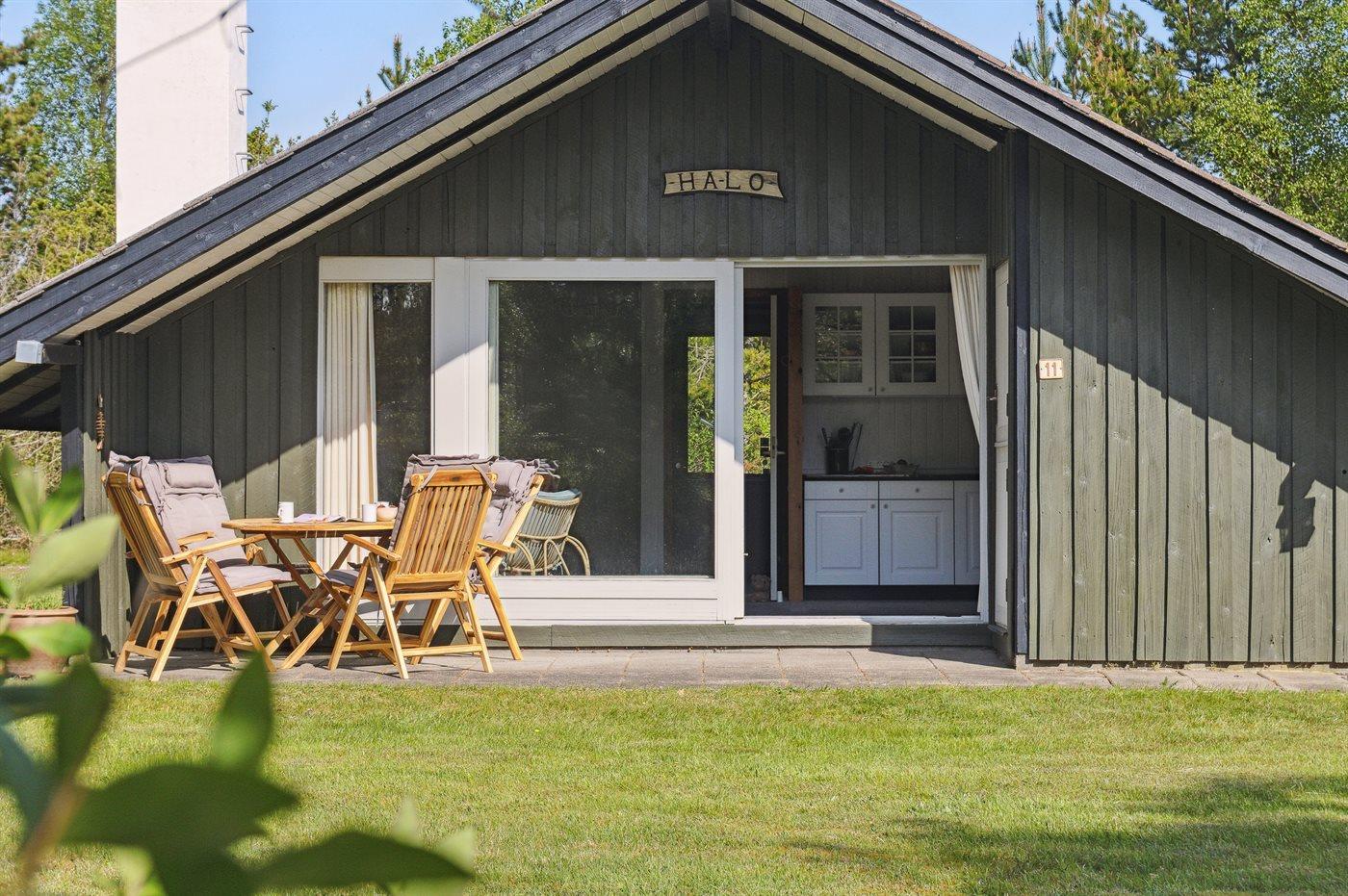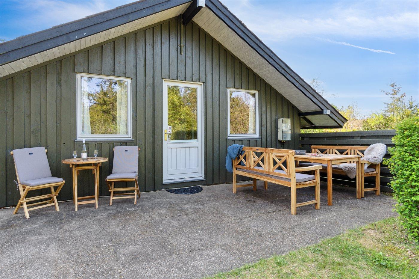 Ferieboligen er beliggende på en 2600 m² stor naturgrund. Der er 600 m til havet. Nærmeste forretning er beliggende i en afstand af 4000 m. Der er en golfbane i en afstand af 8000 m. Desuden er der 12 m² overdækket terrasse. Til ferieboligen hører åbent terrasseareal. Gynge. Der ligger en legeplads i en afstand af 1000 m. Grill til rådighed. Der er installeret stik til opladning af elbil. Med 11 kW ladeeffekt. Parkering ved ferieboligen.