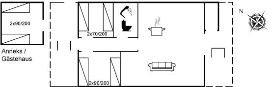 Der er i alt 3 soveværelser. Sovepladserne fordeler sig på: 2 sovepladser i dobbeltseng. 4 sovepladser i enkeltsenge. 2 af disse sovepladser befinder sig i et anneks.