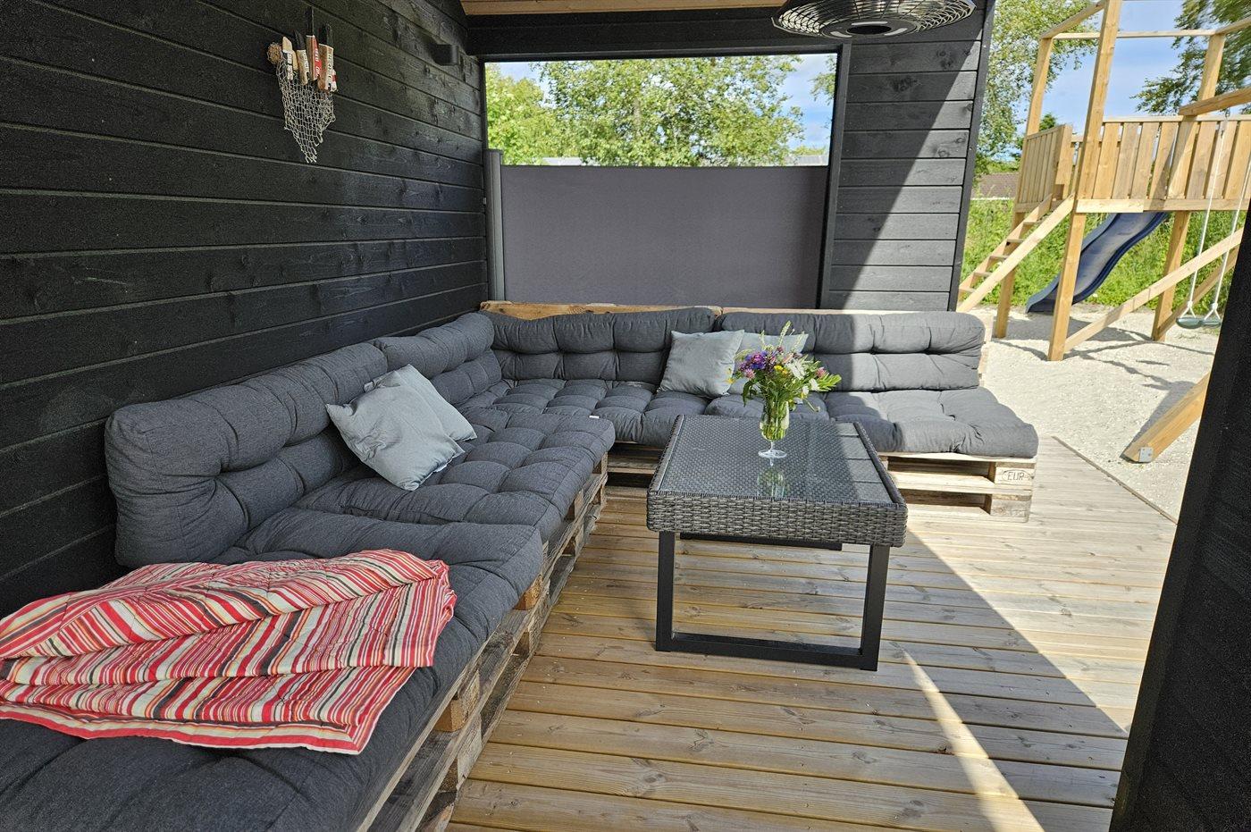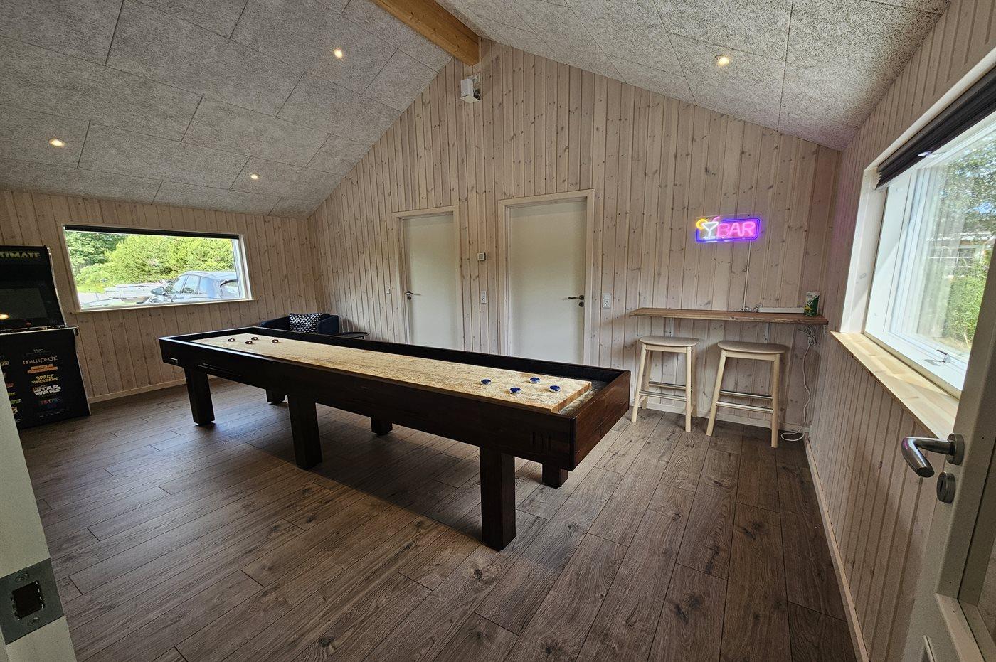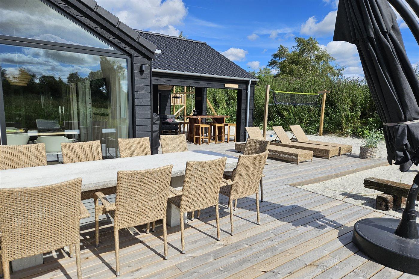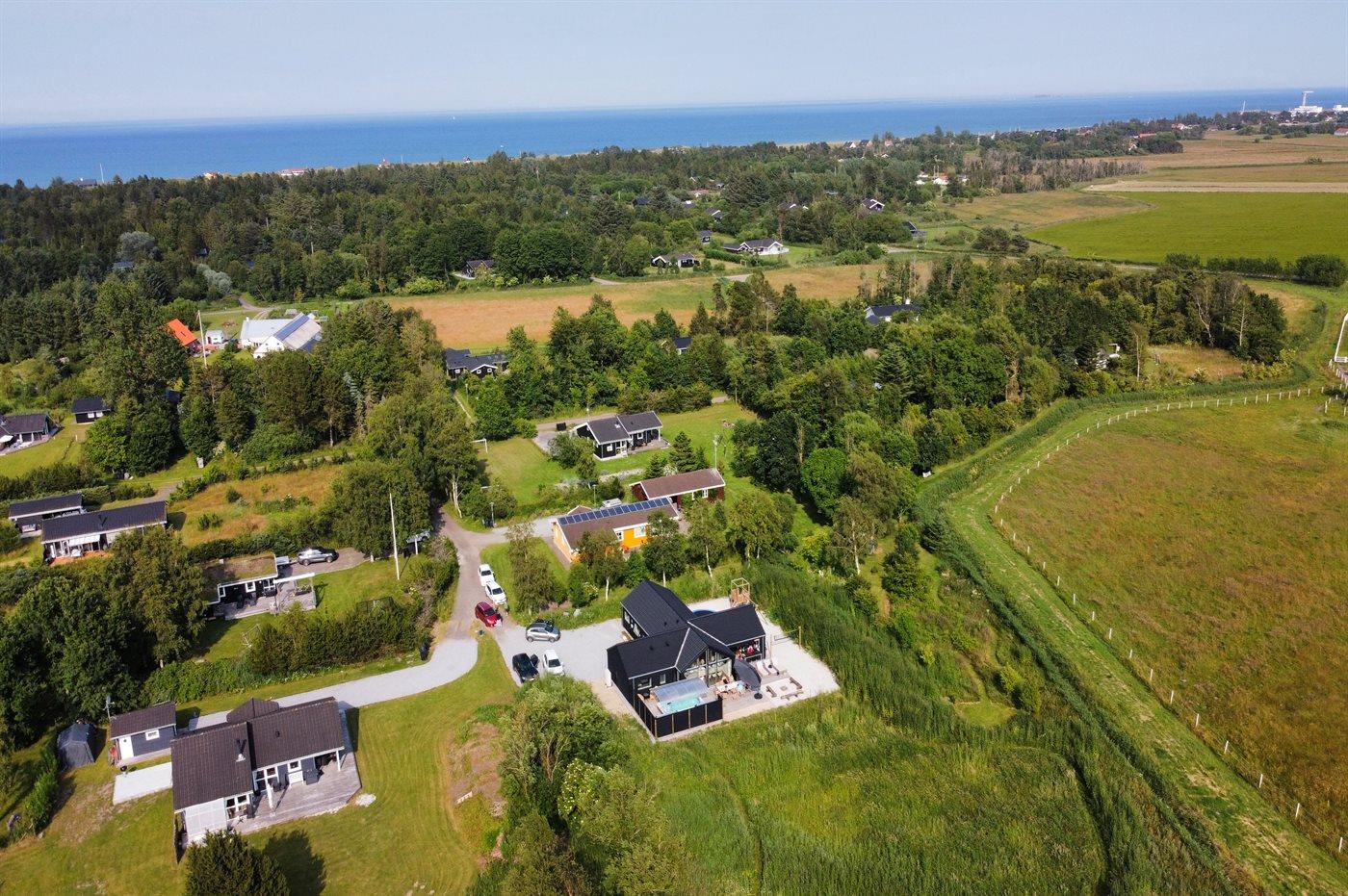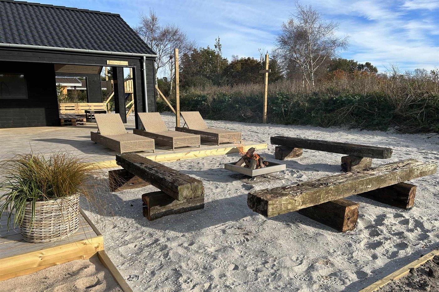 Ferieboligen er beliggende på en 3000 m² stor naturgrund. Der er 800 m til havet. Nærmeste forretning er beliggende i en afstand af 2000 m. Til ferieboligen hører åbent terrasseareal. Desuden er der overdækket terrasse. Gynge. Trampolin. Legetårn. Rutchebane. Beachvolley. Petanque. Udendørs bruser. Gasgrill og pizzaoven står til rådighed. Der er installeret stik til opladning af elbil. Med 11 kW ladeeffekt. Parkering ved ferieboligen.