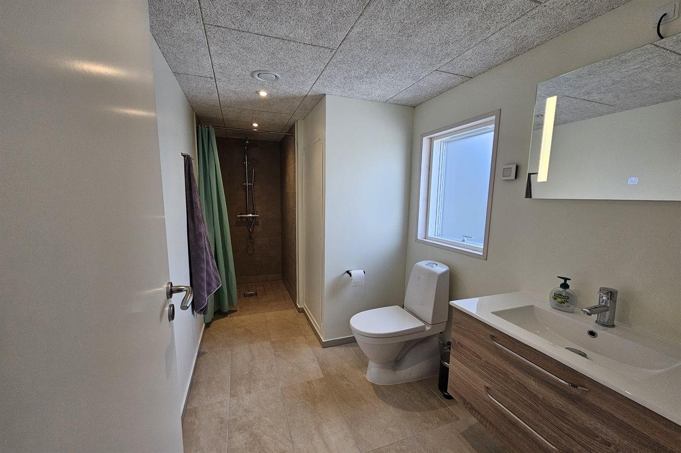 Der er 2 badeværelser med bruseniche og 2 toiletter. Der er gulvvarme på 2 badeværelser.