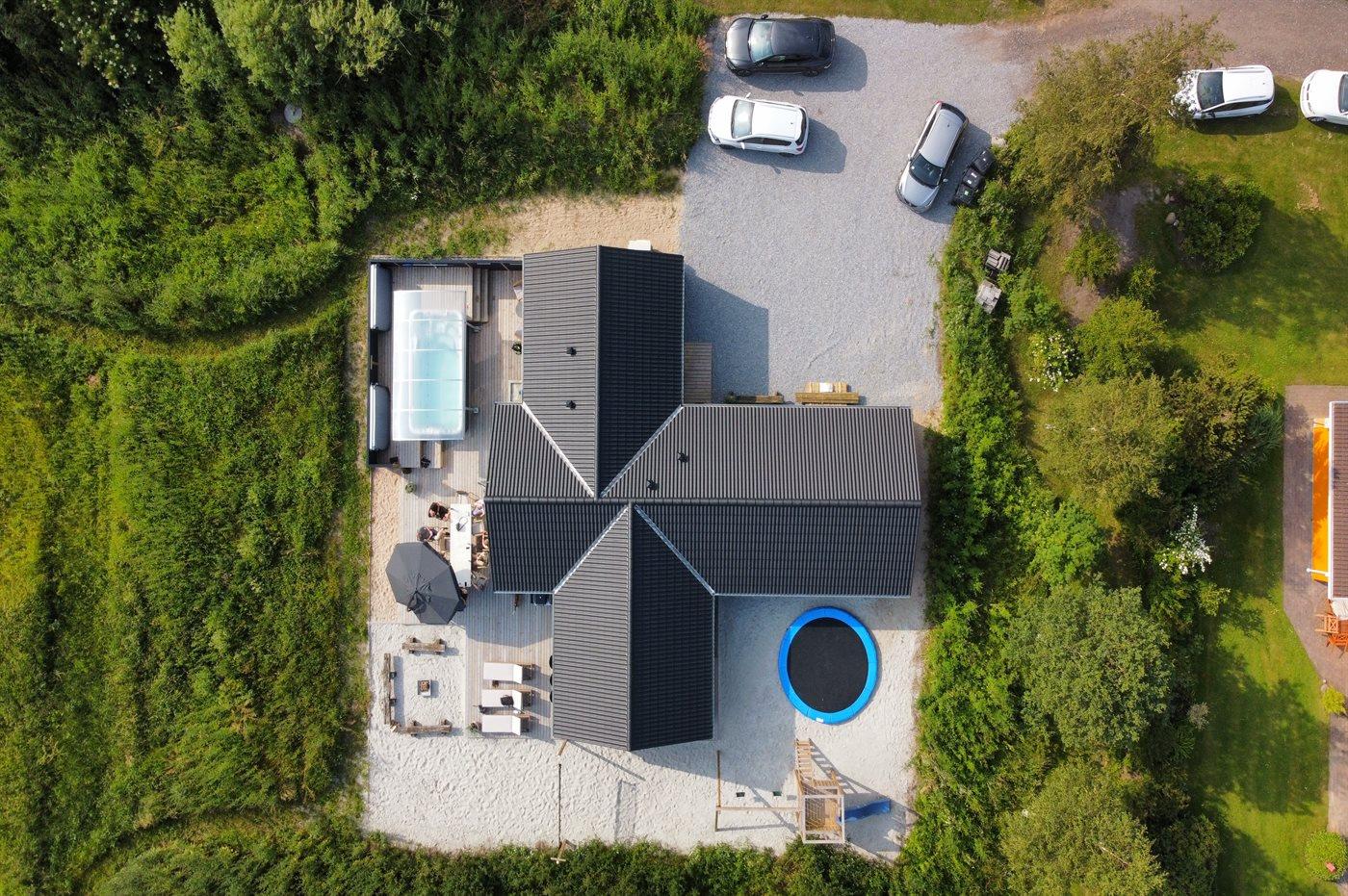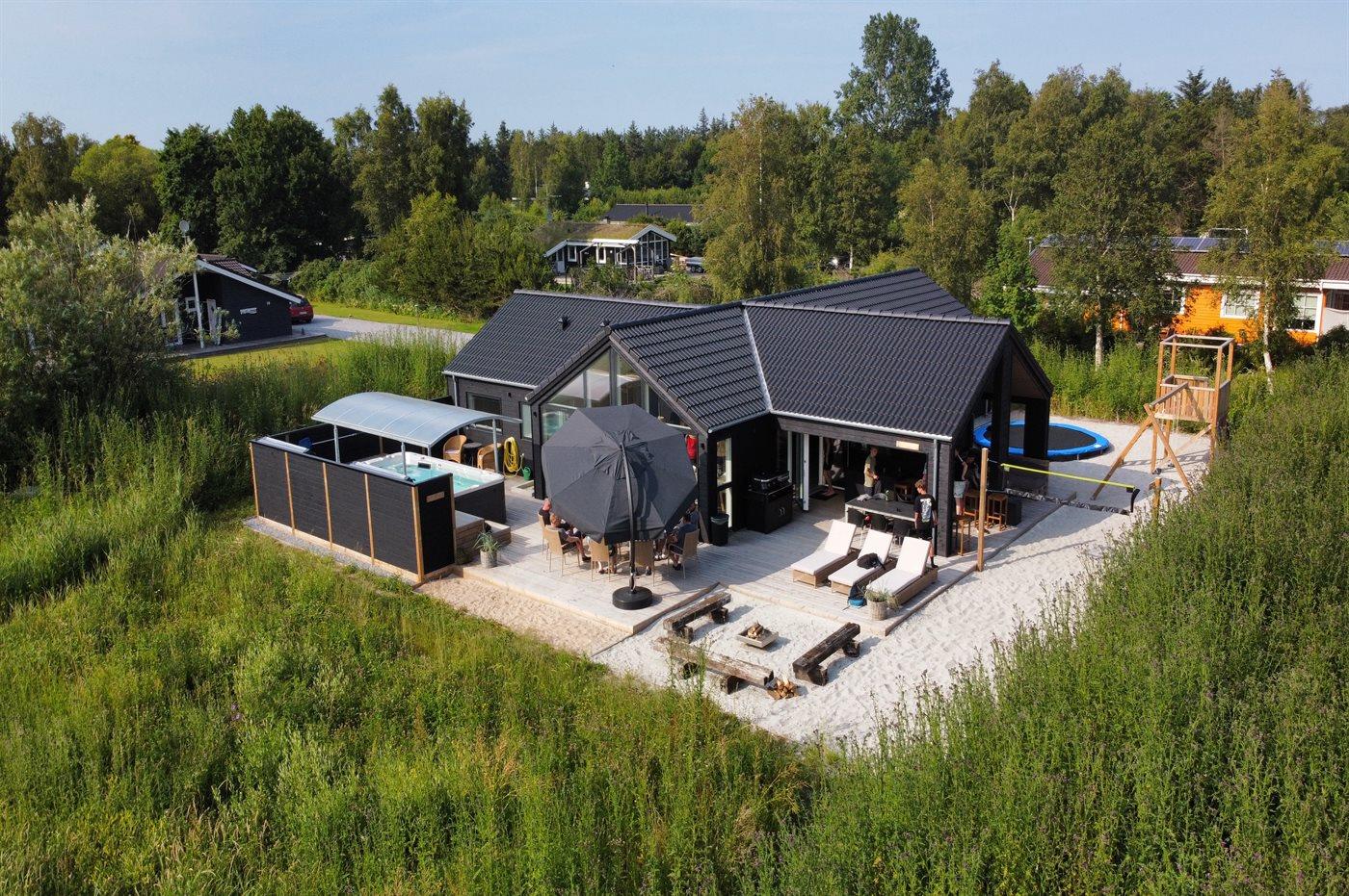 Dette fantastiske, nyopførte aktivitetshus med plads til 12 personer ligger i flot natur - tæt på den børnevenlige badestrand ved Bratten. Til huset hører dejlige terrasser og en stor svømmespa. Der er desuden anlagt en boldbane.