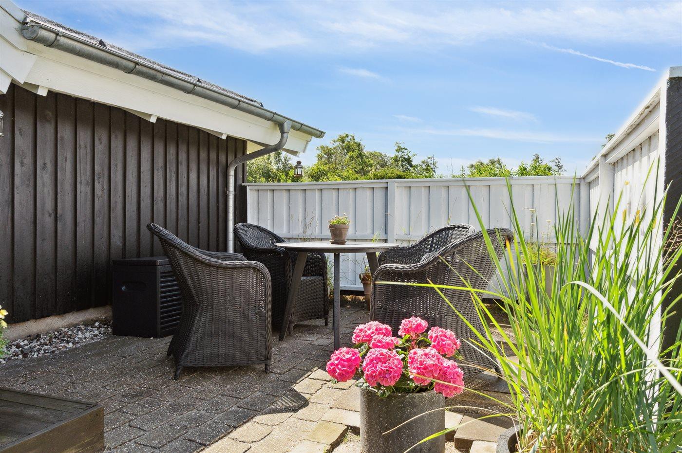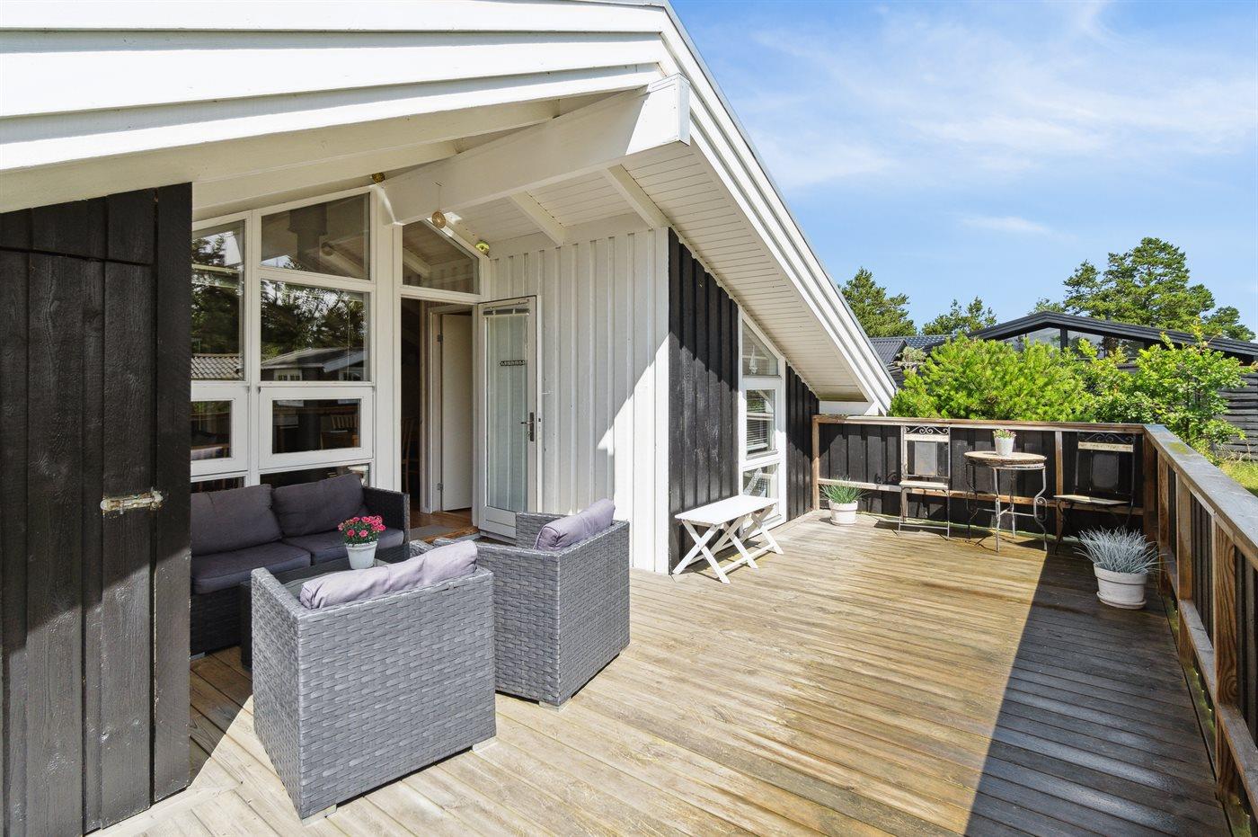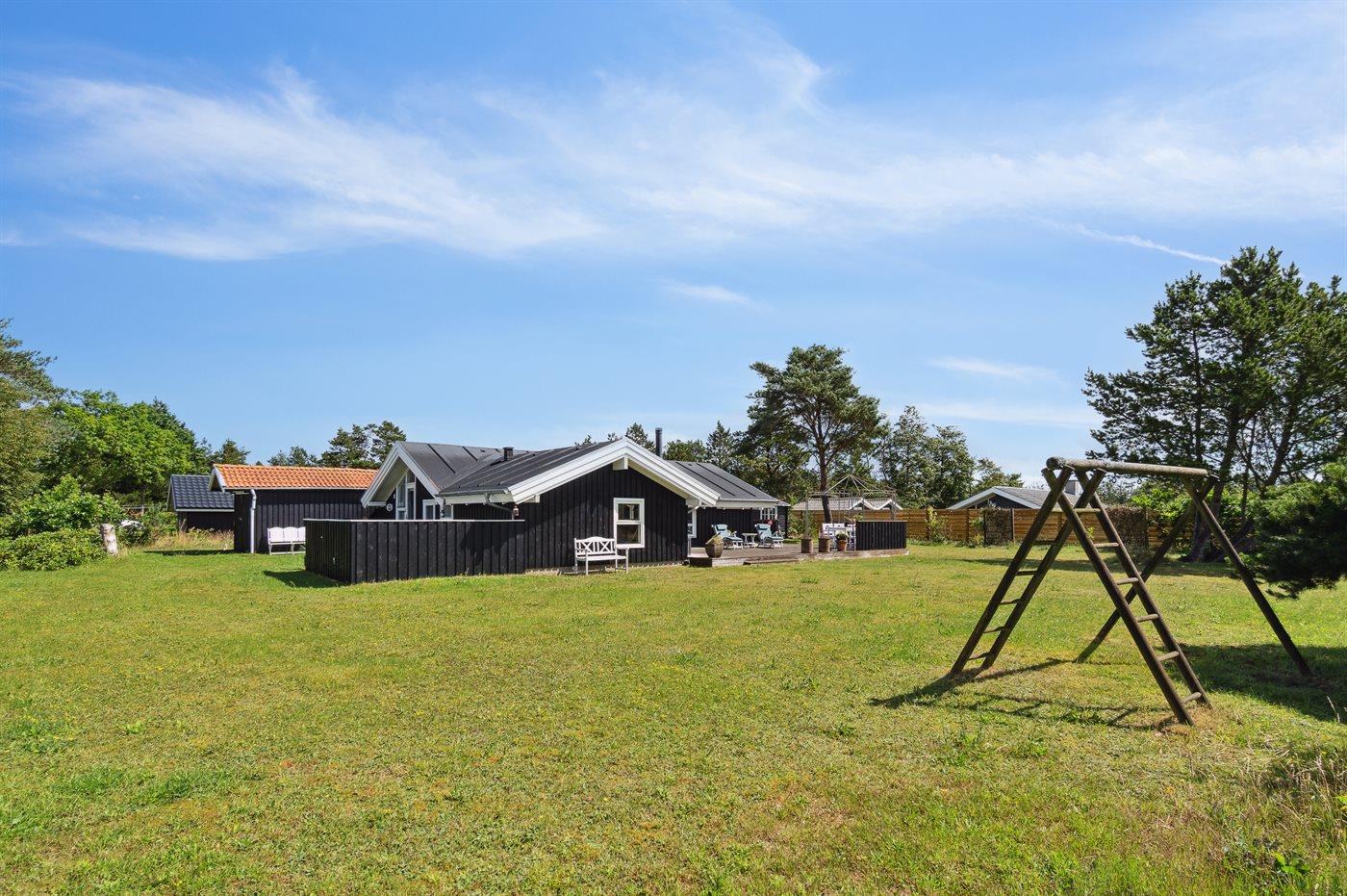Ferieboligen er beliggende på en 1200 m² stor naturgrund. Der er 180 m til havet. Nærmeste forretning er beliggende i en afstand af 1200 m. Der er en golfbane i en afstand af 4500 m. Til ferieboligen hører åbent terrasseareal. Desuden er der overdækket terrasse. Gynge. Der ligger en legeplads i en afstand af 800 m. Grill til rådighed. Der er carport til rådighed. Parkering ved ferieboligen.