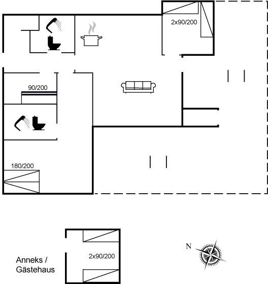Der er i alt 4 soveværelser. Sovepladserne fordeler sig på: 2 sovepladser i dobbeltseng. 4 sovepladser i enkeltsenge. 2 sovepladser i køjeseng. 2 af disse sovepladser befinder sig i anneks.