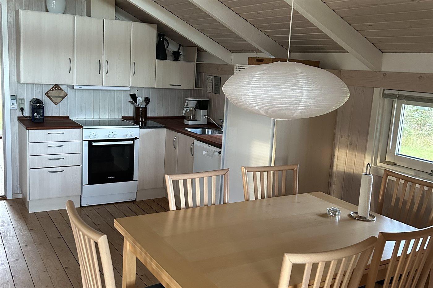 Køkkenet er udstyret med 1 køleskab. Der er 4 keramiske kogeplader, varmluftovn, mikrobølgeovn samt opvaskemaskine.