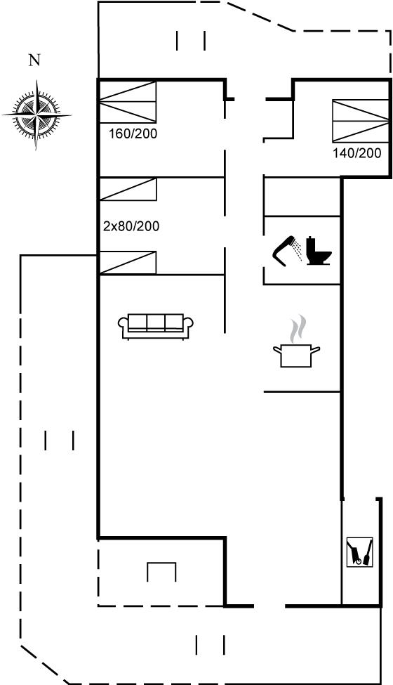 Der er i alt 3 soveværelser. Sovepladserne fordeler sig på: 4 sovepladser i dobbeltsenge. 2 sovepladser i enkeltsenge.
