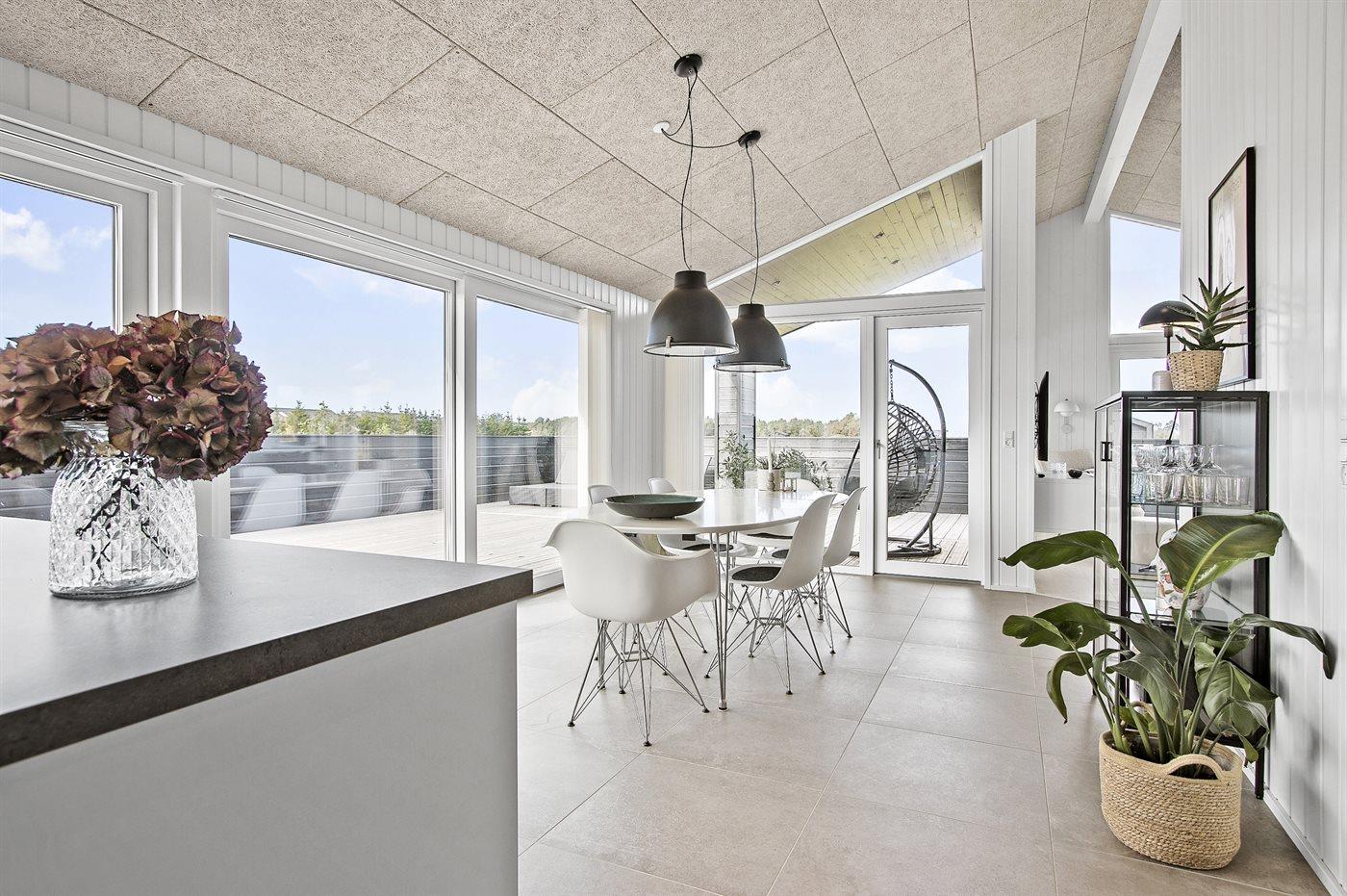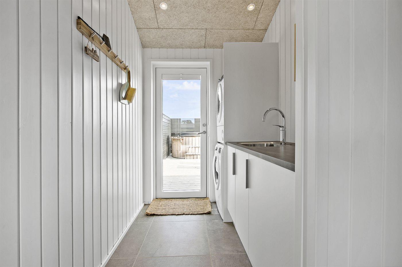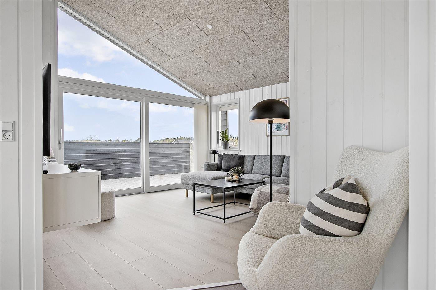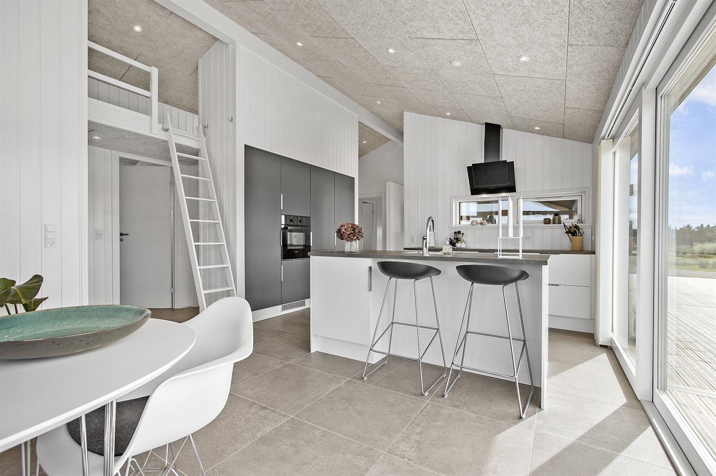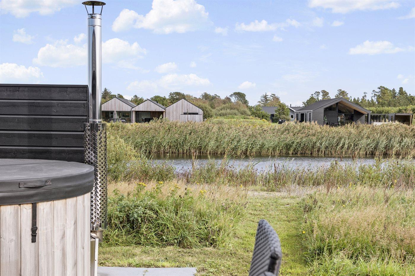 Ferieboligen er beliggende på en 2594 m² stor naturgrund. Der er 900 m til havet. Nærmeste forretning er beliggende i en afstand af 4000 m. Til ferieboligen hører åbent terrasseareal. Desuden er der overdækket terrasse. Der er redskabsrum. Gynge. Trampolin. Fodboldmål. Udendørs bruser. Grill til rådighed. Der er installeret stik til opladning af elbil. Med 11 kW ladeeffekt. Parkering ved ferieboligen.