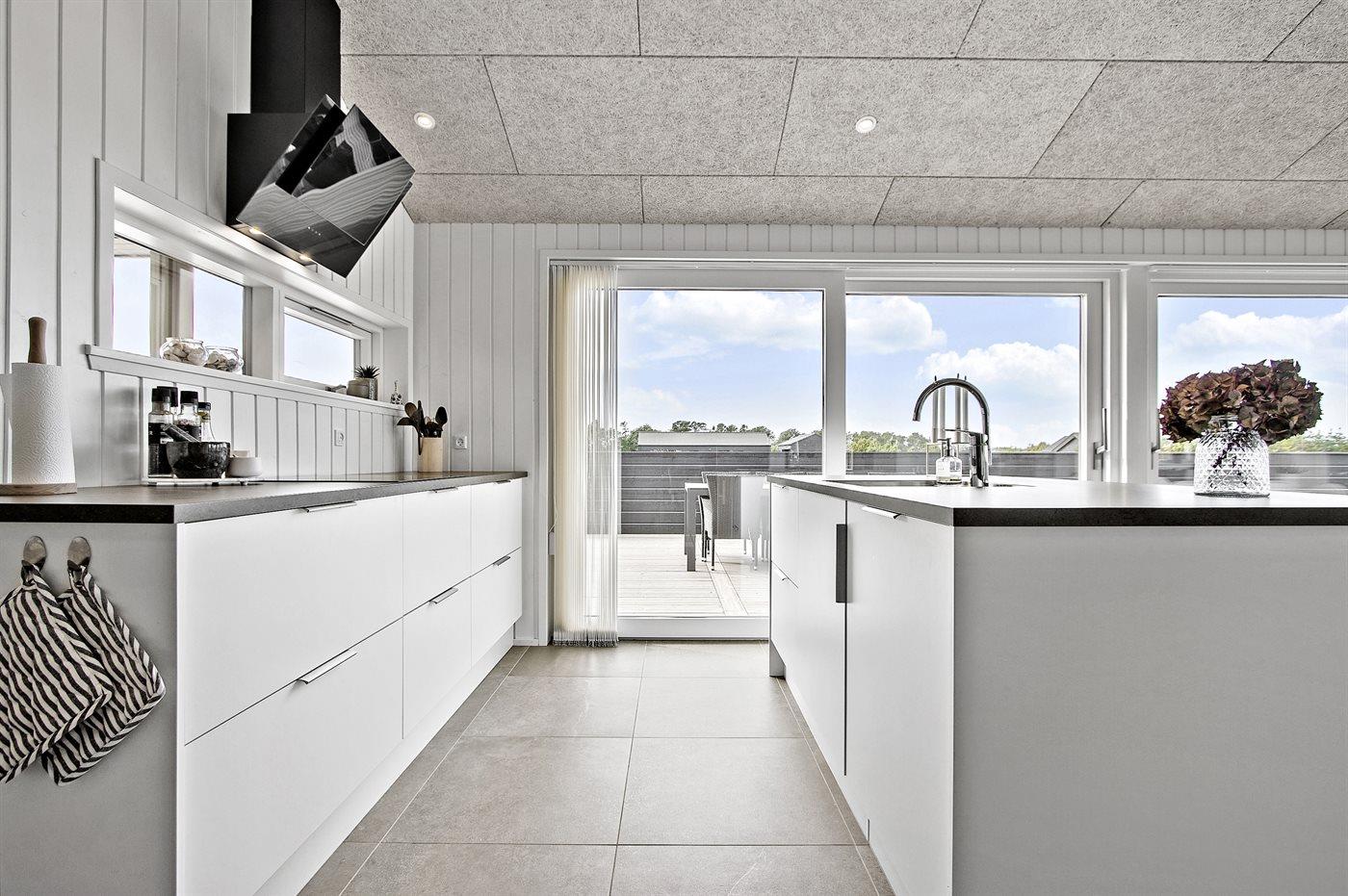 Køkkenet er veludstyret og har 1 køleskab. Der er 4 induktionskogeplader, varmluftovn, mikrobølgeovn samt opvaskemaskine.