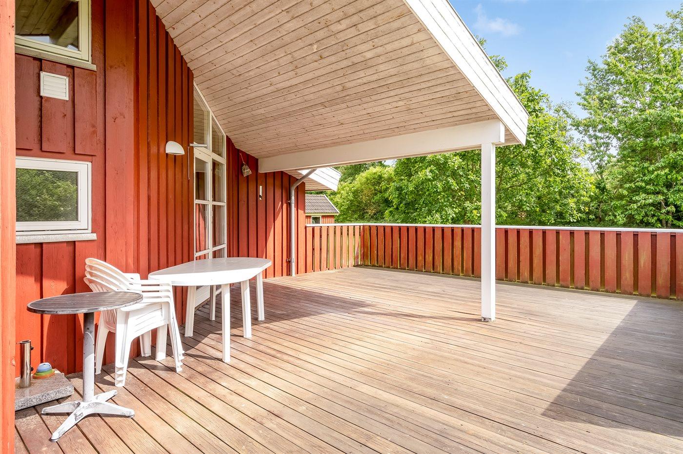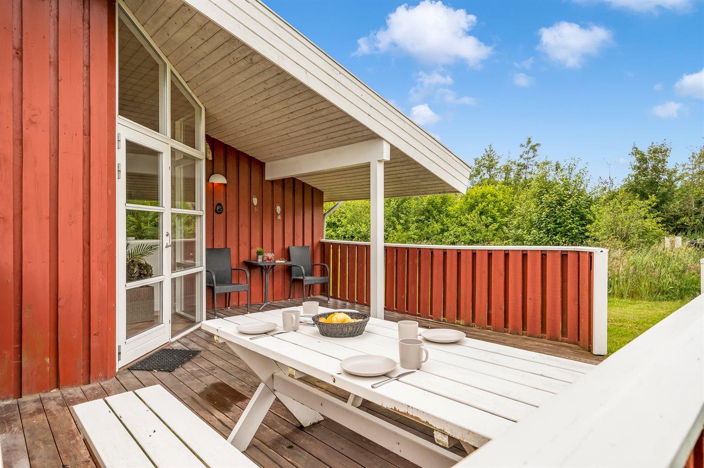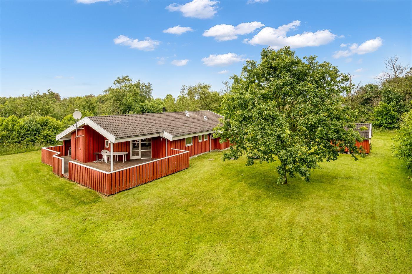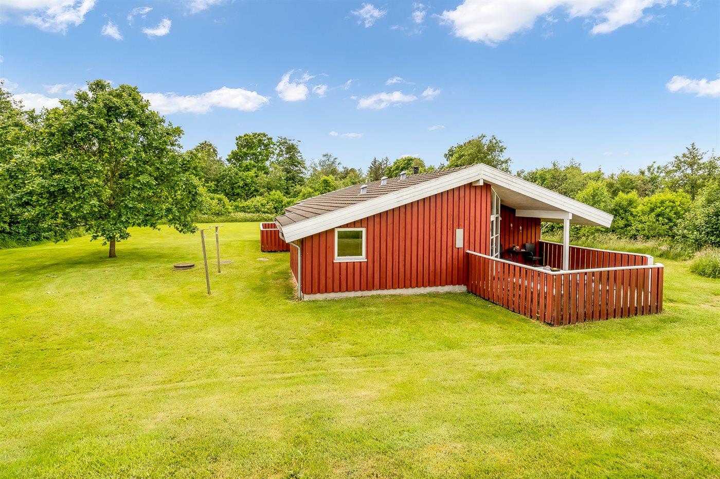 Ferieboligen er beliggende på en 3428 m² stor naturgrund. Der er 300 m til havet. Der er en badebro i nærheden. Nærmeste forretning er beliggende i en afstand af 4000 m. Der er en golfbane i en afstand af 11000 m. Til ferieboligen hører åbent terrasseareal. Desuden er der overdækket terrasse. Der er redskabsrum. Fodboldmål. Der ligger en legeplads i en afstand af 1500 m. Grill til rådighed. Parkering ved ferieboligen.