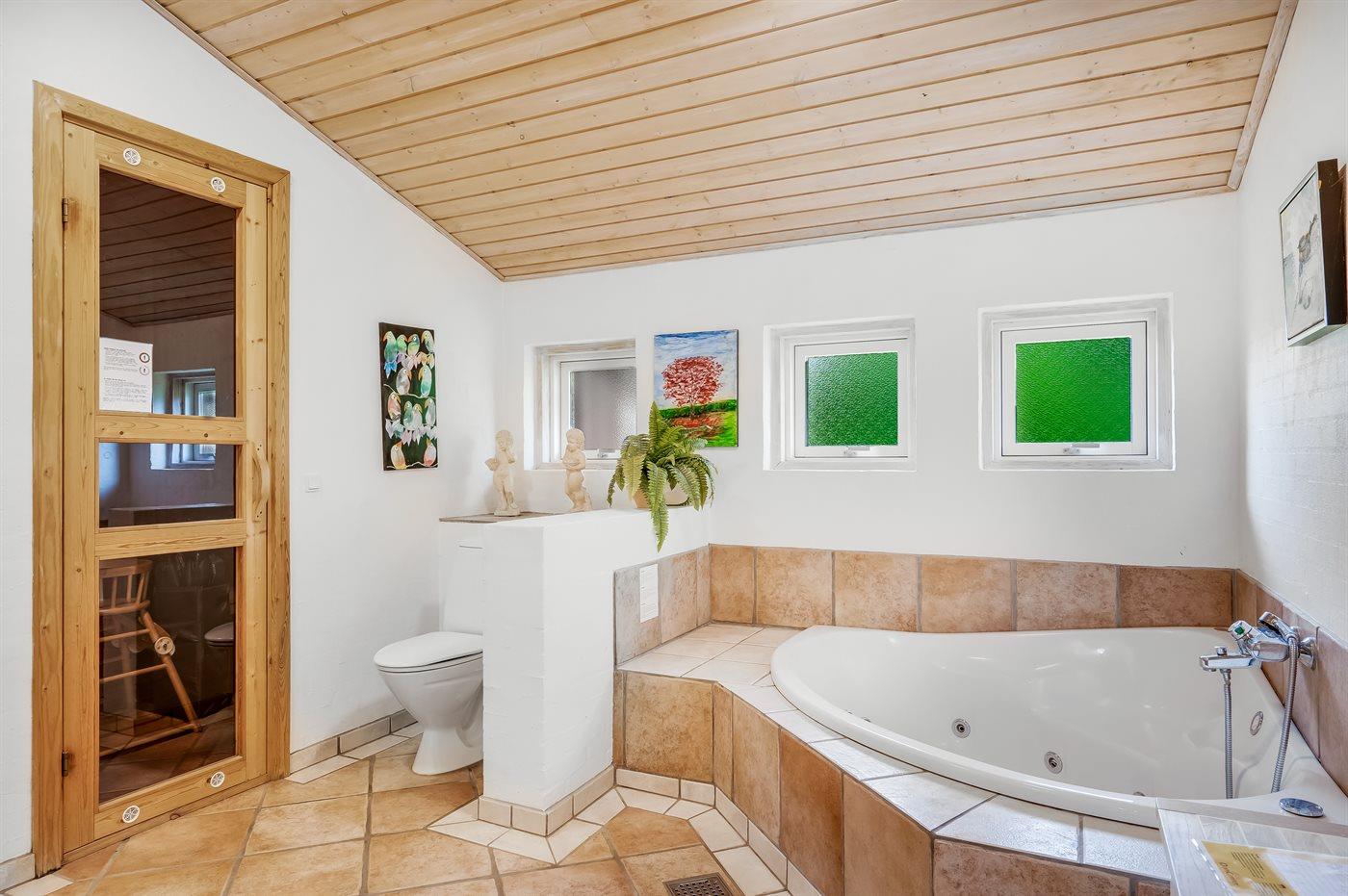 Der er 2 badeværelser med bruseniche og 2 toiletter. Der er gulvvarme på 2 badeværelser. I saunaen er der mulighed for afslapning.