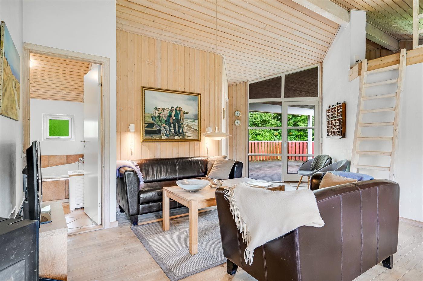 Rummeligt sommerhus i Bratten tæt på børnevenlig strand, med spa, sauna og stor naturgrund.