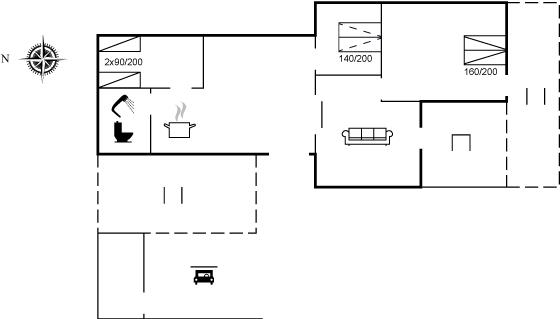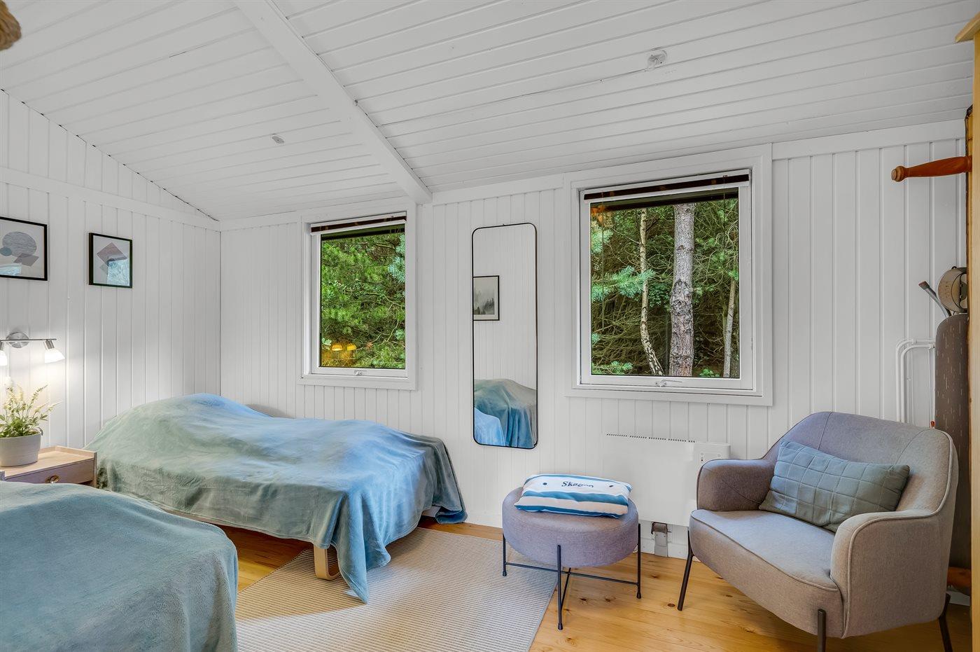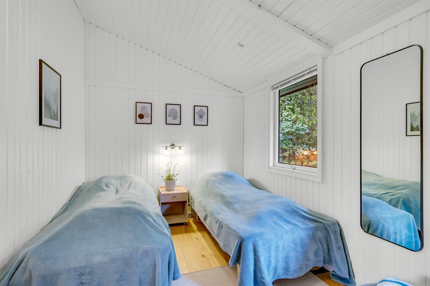 Der er i alt 3 soveværelser. Sovepladserne fordeler sig på: 2 sovepladser i dobbeltseng. 2 sovepladser i enkeltsenge. 2 sovepladser i sovesofa (dobbelt). Derudover er der 1 stk. barneseng.