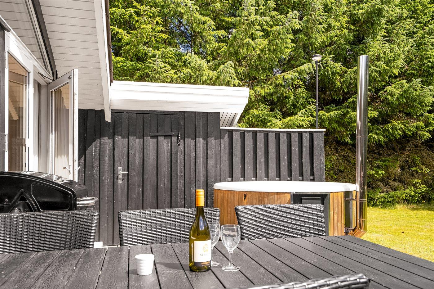 Der er mulighed for afslapning i det udendørs vildmarkskar til 4 personer.