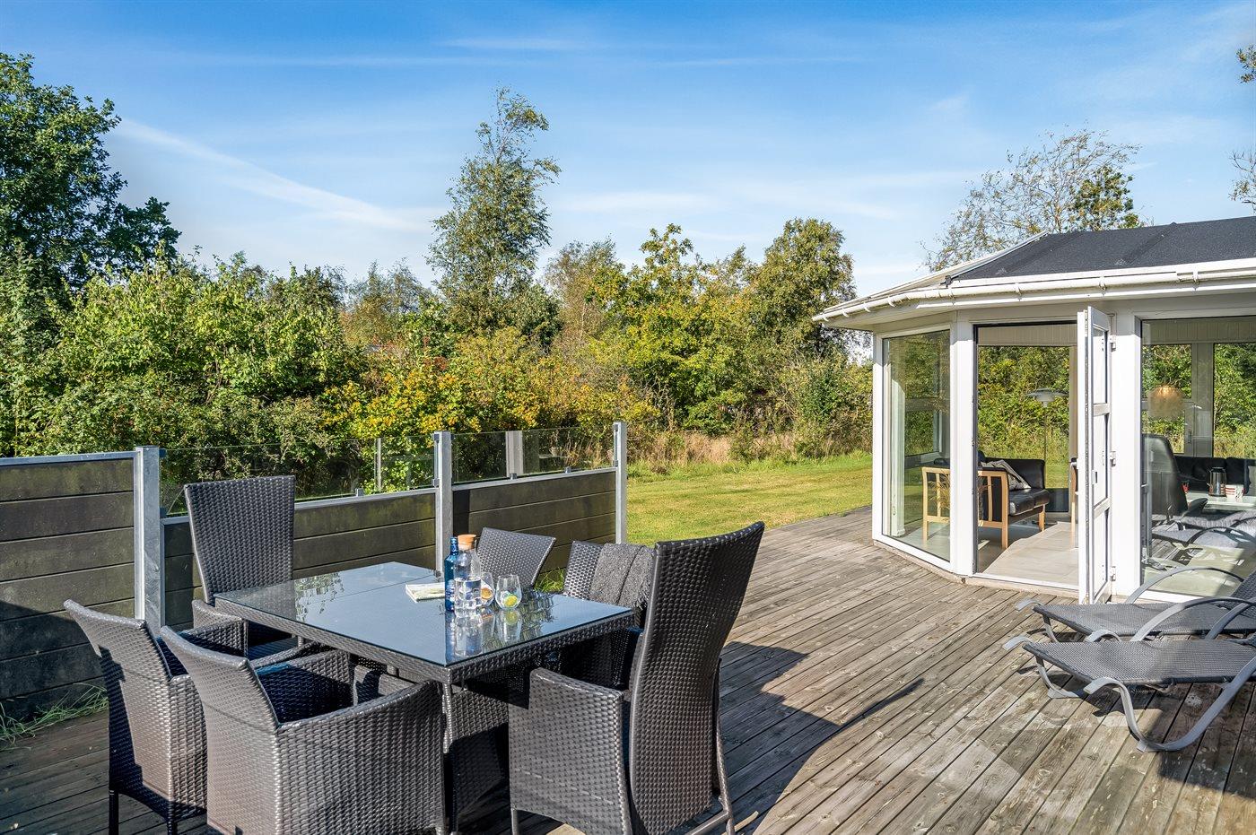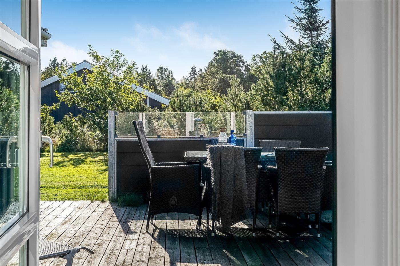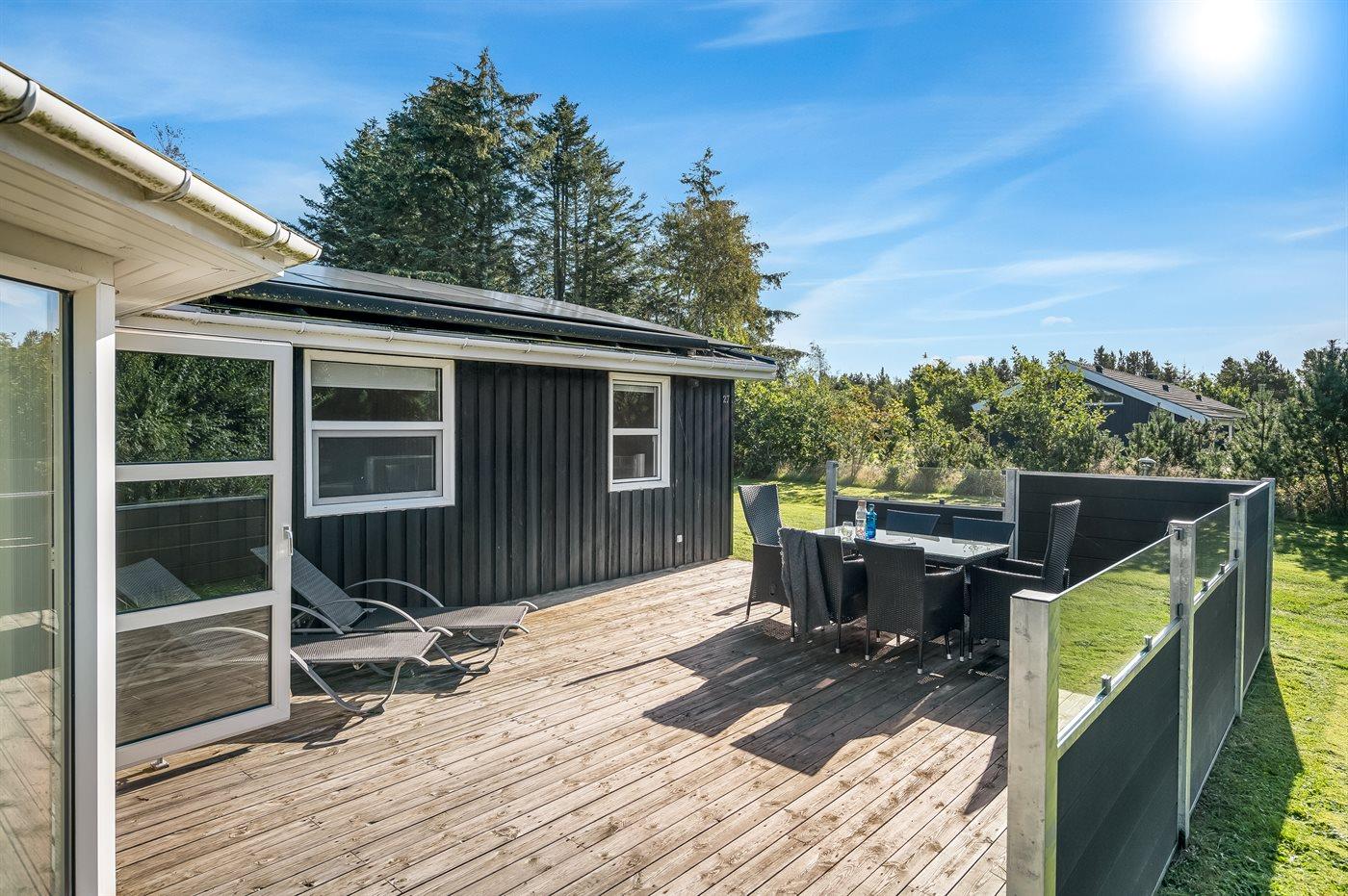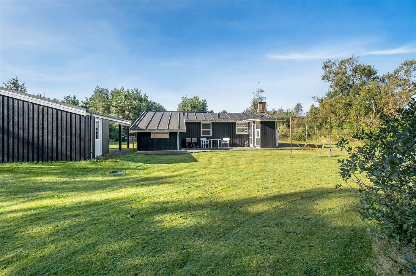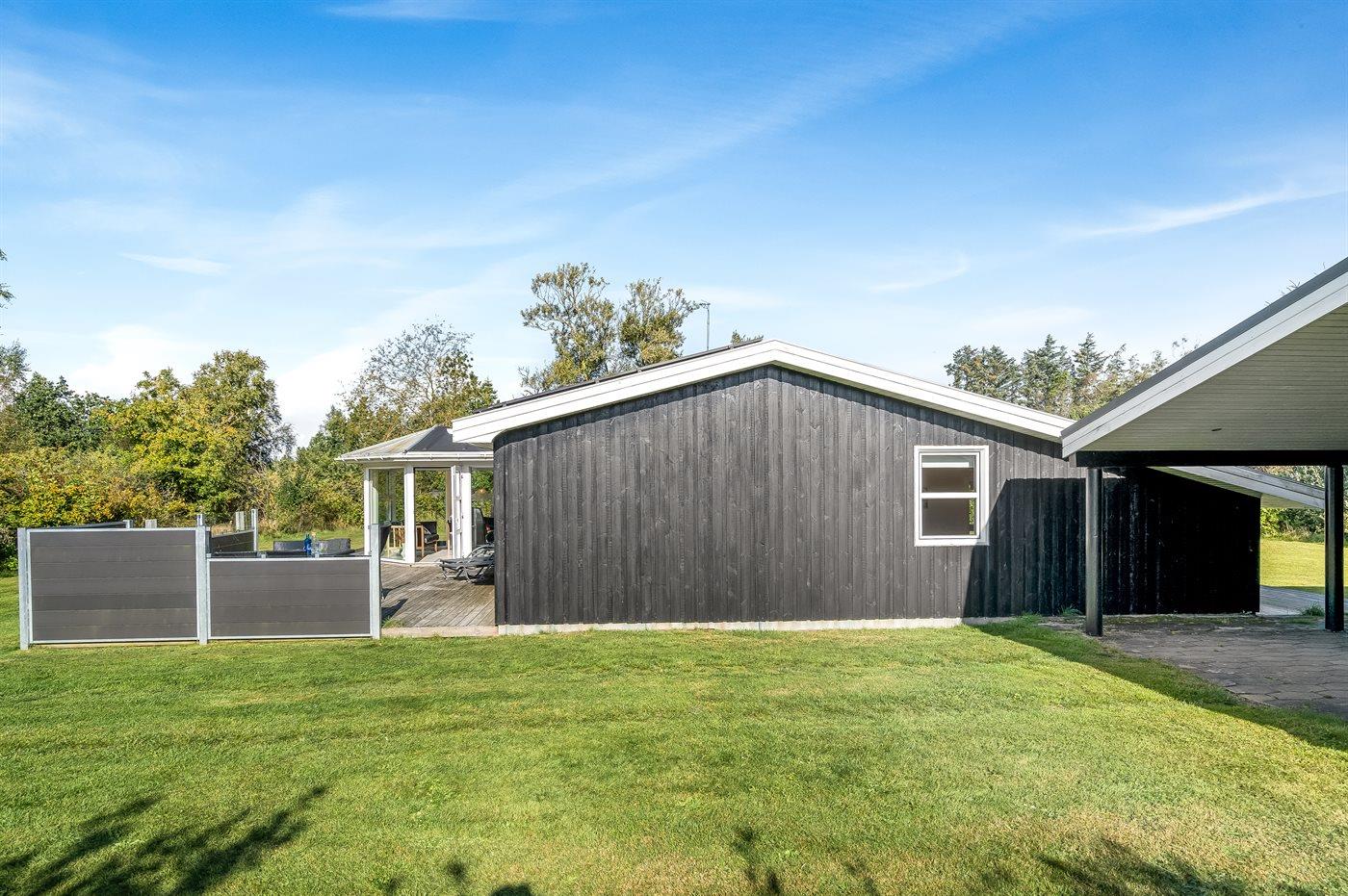 Ferieboligen er beliggende på en 1200 m² stor naturgrund. Der er 500 m til havet. Nærmeste forretning er beliggende i en afstand af 4000 m. Til ferieboligen hører åbent terrasseareal. Der er redskabsrum. Gynge. Grill til rådighed. Der er carport til rådighed. Der er installeret stik til opladning af elbil. Med 11 kW ladeeffekt. Parkering ved ferieboligen.