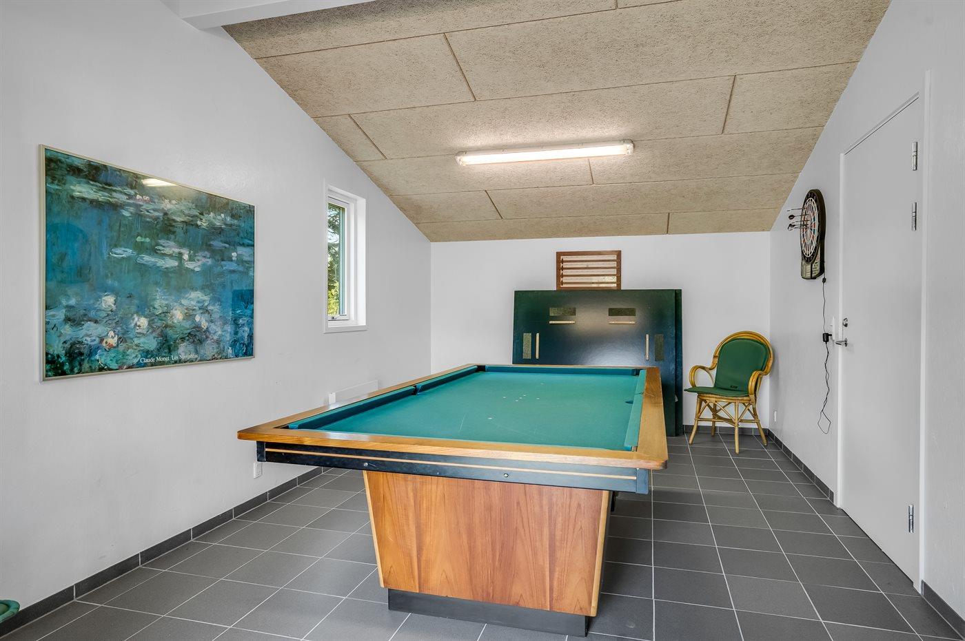 I aktivitetsrummet er der følgende udstyr: Poolbord. Bordtennis. Dart.