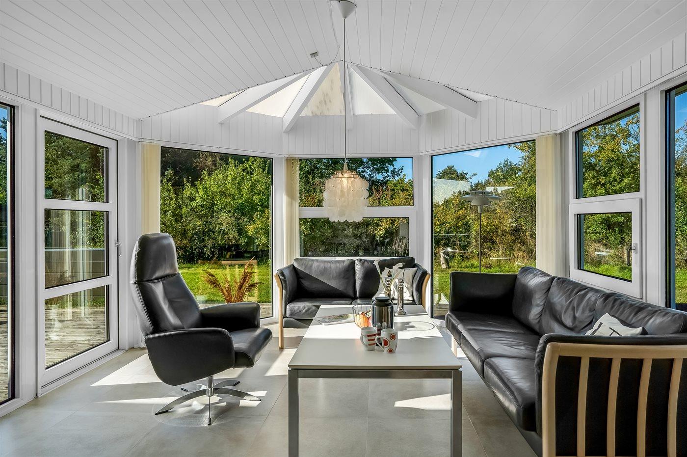 Charmerende sommerhus nær børnevenlig strand og flot natur i Bratten, ideelt for familier og par med aktivitetsrum og elbiloplader.