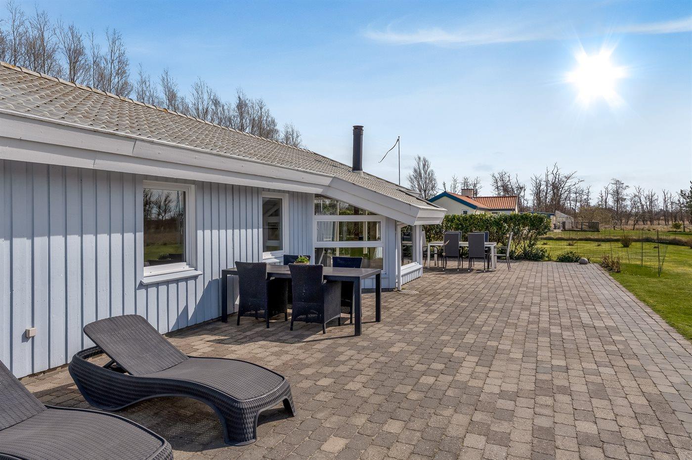 Ferieboligen er beliggende på en 1463 m² stor naturgrund. Der er 400 m til havet. Nærmeste forretning er beliggende i en afstand af 2000 m. Til ferieboligen hører åbent terrasseareal. Desuden er der overdækket terrasse. Der er redskabsrum. Grill til rådighed. Parkering ved ferieboligen.