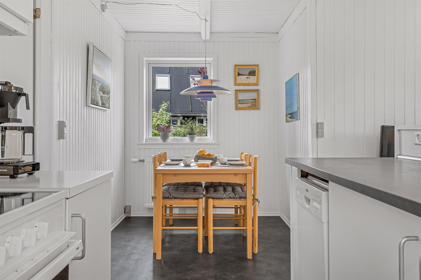 Køkkenet er udstyret med 1 køleskab. Der er 4 keramiske kogeplader, varmluftovn, mikrobølgeovn samt opvaskemaskine.