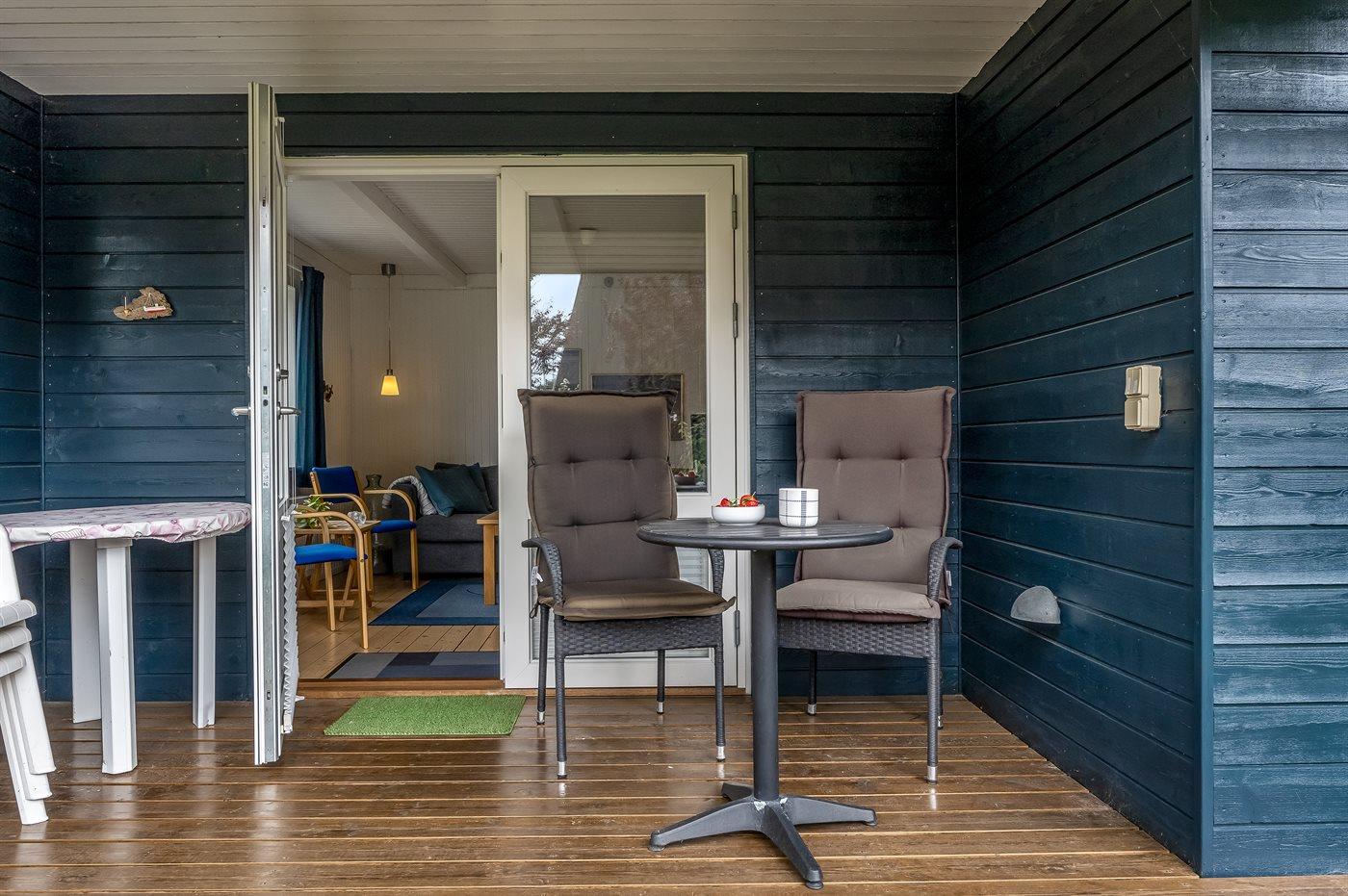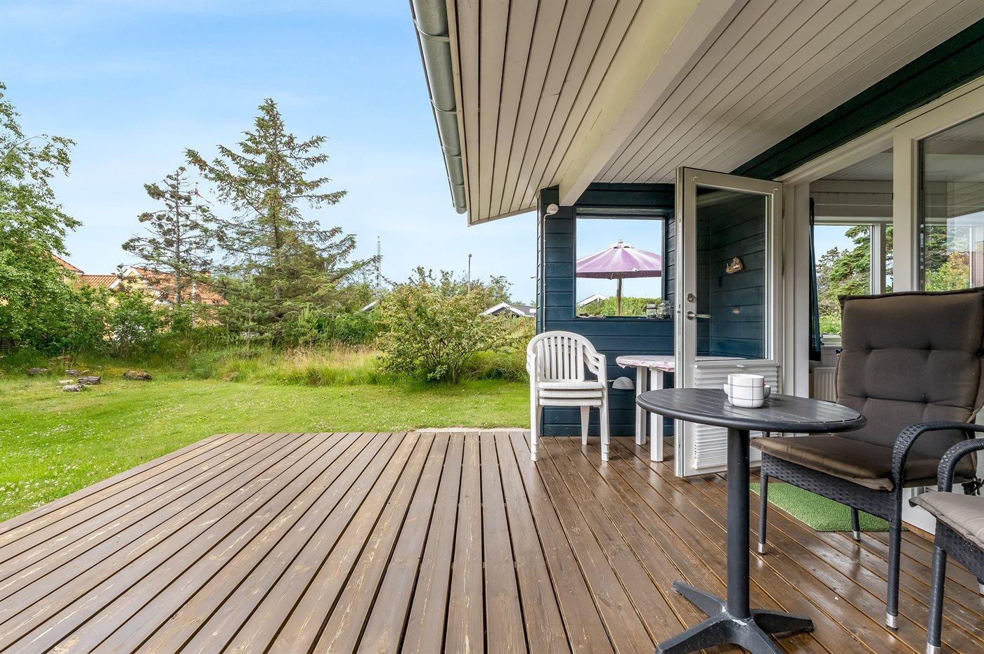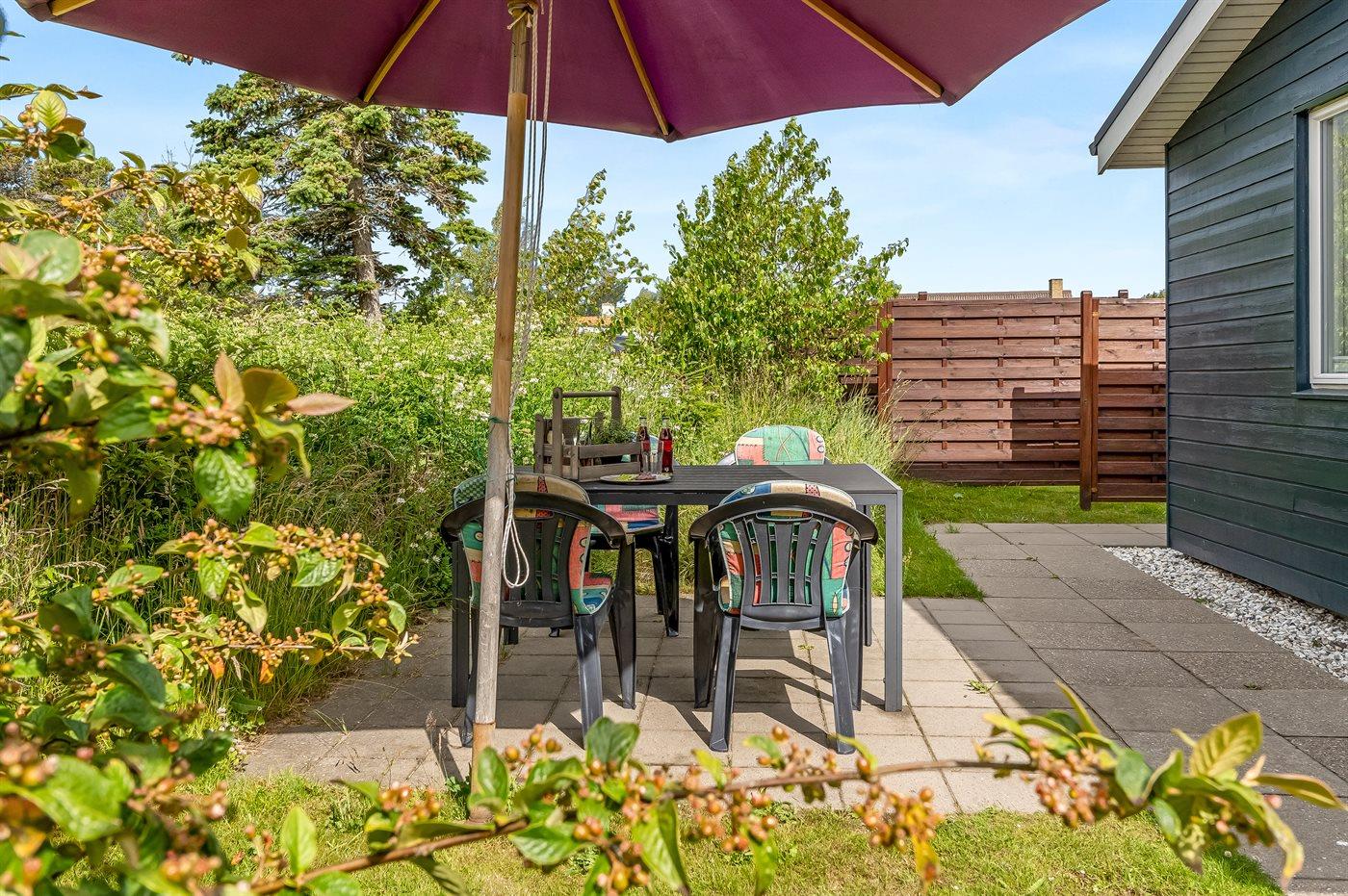 Ferieboligen er beliggende på en 700 m² stor naturgrund. Der er 100 m til havet. Nærmeste forretning er beliggende i en afstand af 1100 m. Til ferieboligen hører åbent terrasseareal. Desuden er der overdækket terrasse. Grill til rådighed. Der er carport til rådighed. Parkering ved ferieboligen.