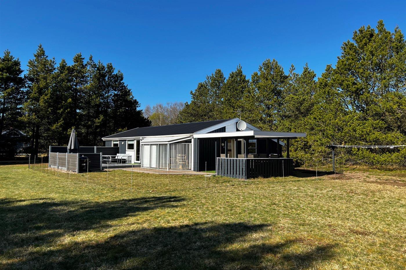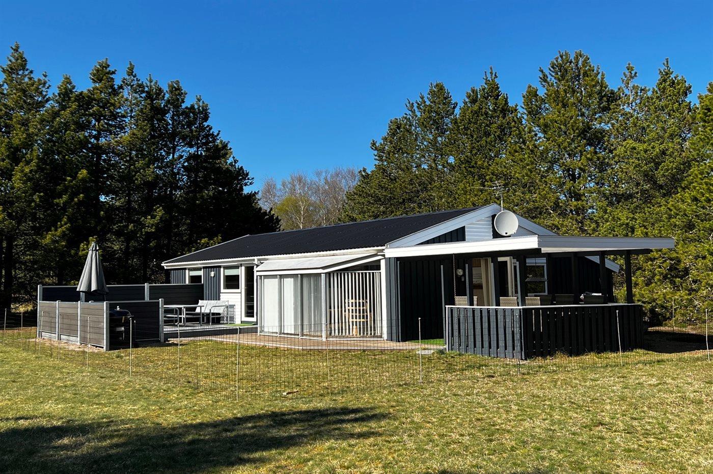 Oplev dette hyggelige og moderne sommerhus beliggende på en stor naturgrund tæt på en børnevenlig strand i Jerup, Bratten.
