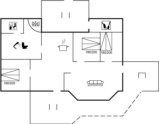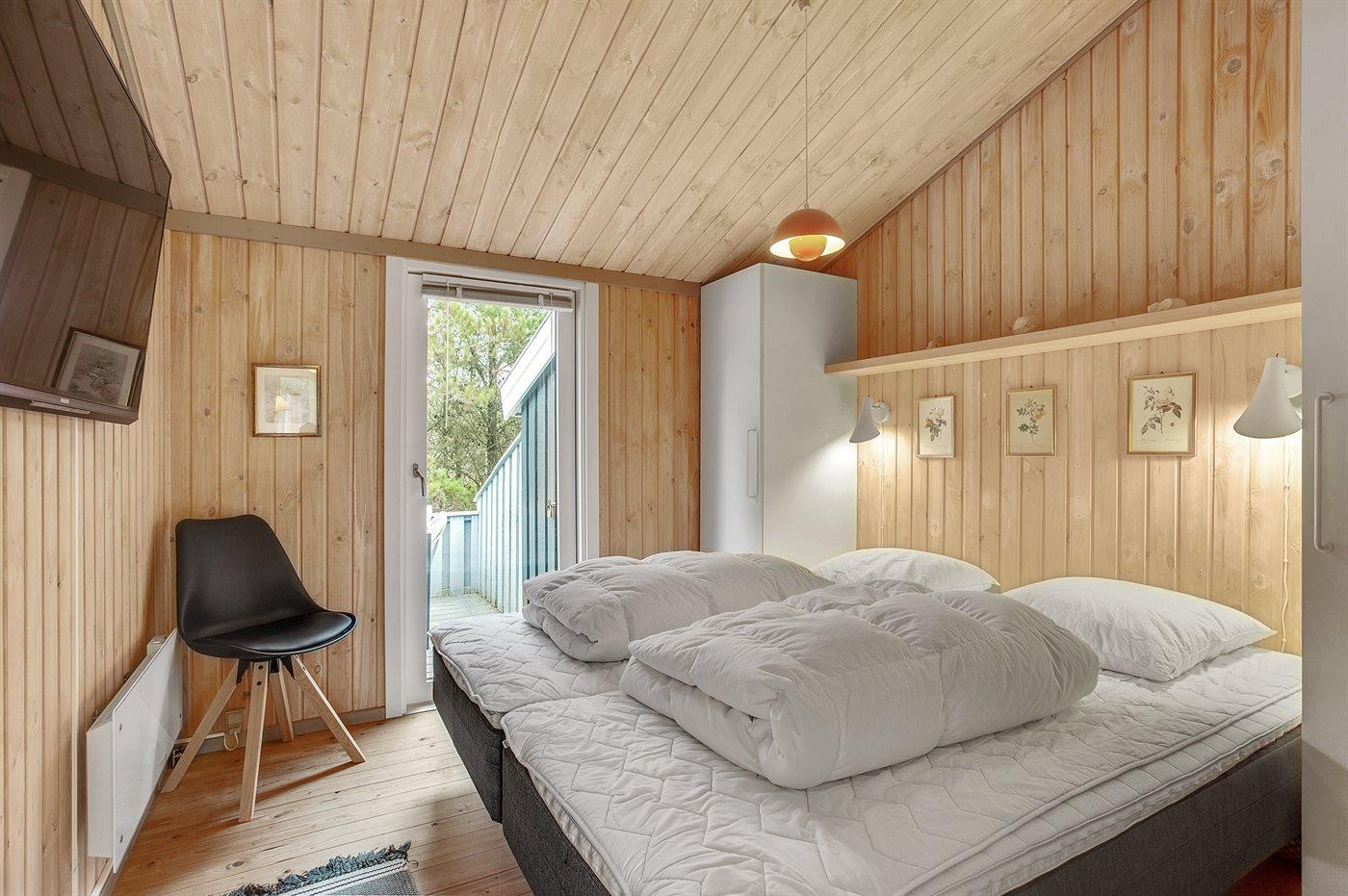 Der er i alt 3 soveværelser. Sovepladserne fordeler sig på: 4 sovepladser i dobbeltsenge.2 sovepladser i elevationssenge.