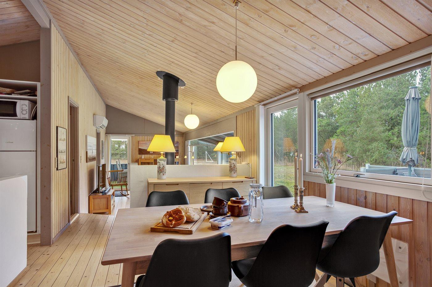 Sommerhuset egner sig til 6 personer. Ferieboligen er på 90 m² og er bygget i 1988. I 2019 gennemgik ferieboligen en delvis renovering. Det er tilladt at medbringe 1 husdyr. Ferieboligen er udstyret med energibesparende varmepumpe. Ferieboligen har vaskemaskine. Tørretumbler. Frysekapacitet på 100 liter. Der er desuden brændeovn. Til de små er der 1 stk. barnestol.