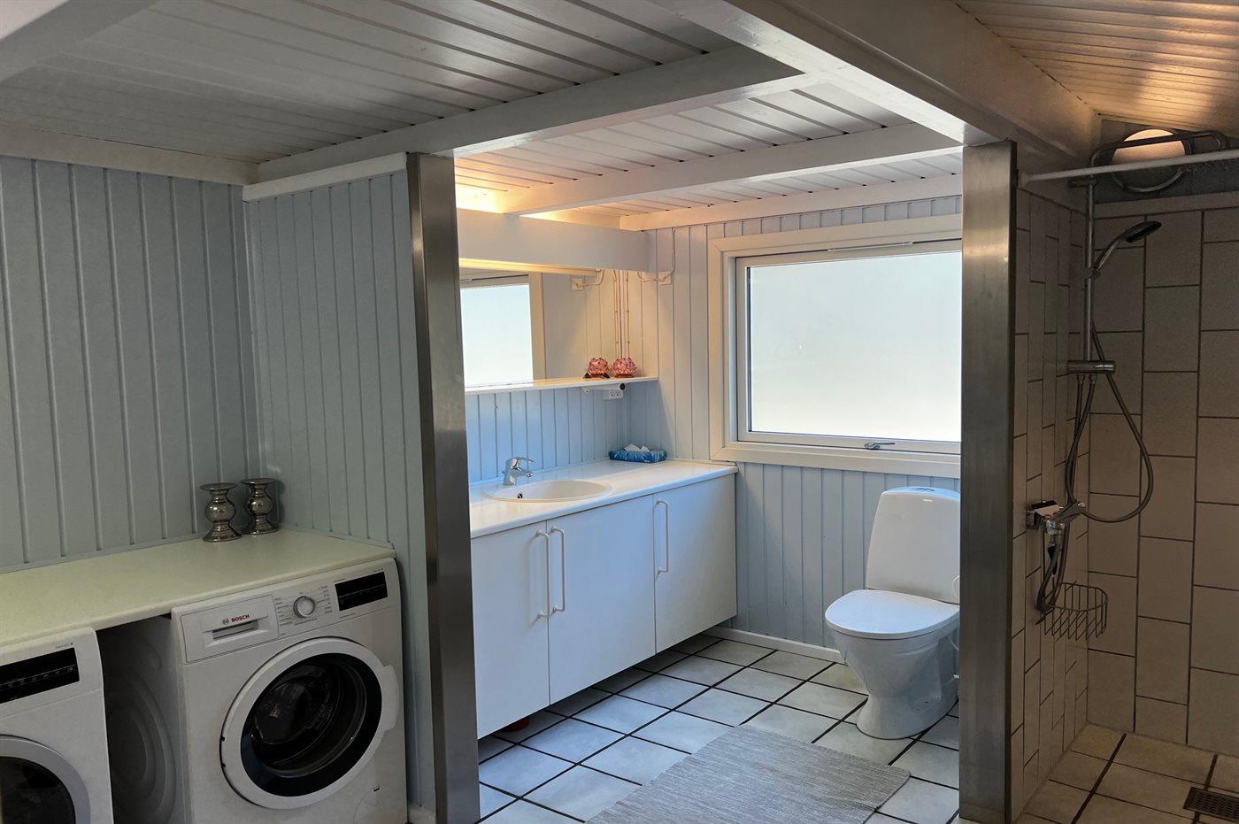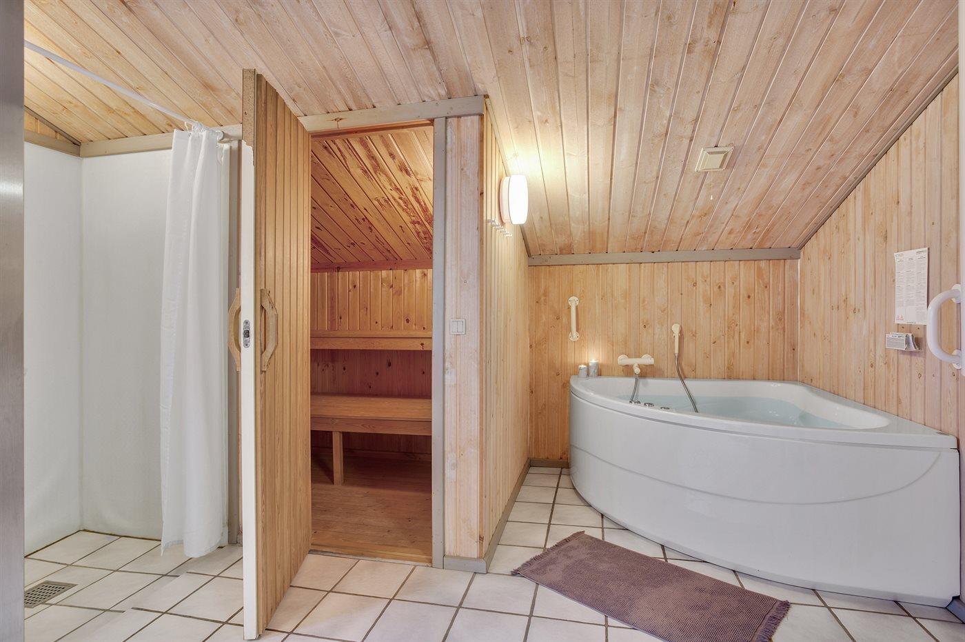 Der er 1 badeværelse med bruseniche og 1 toilet.. Der er gulvvarme på 1 badeværelse. I saunaen er der mulighed for afslapning.