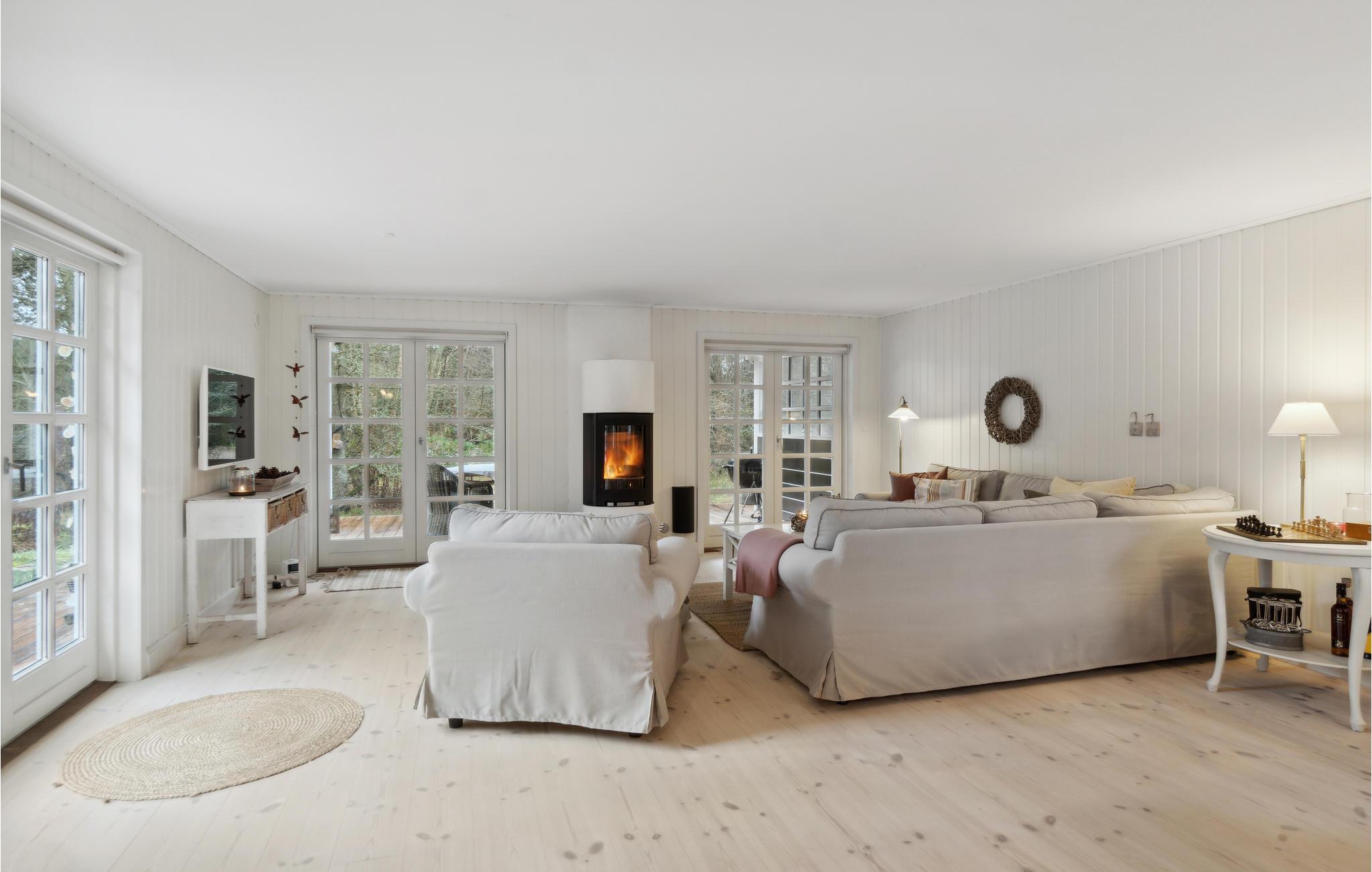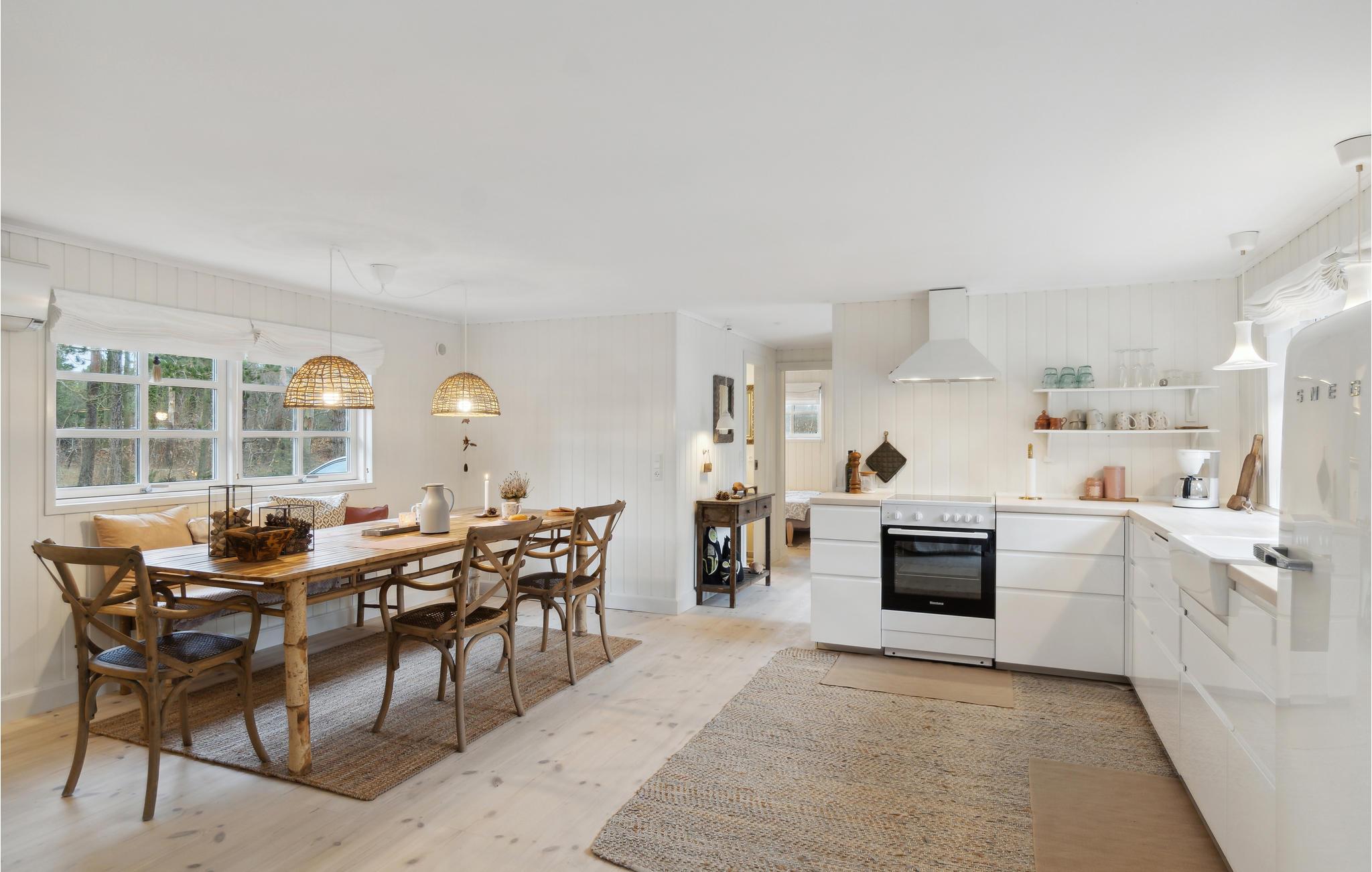 Der er lagt op til en afslappende ferie med et vennepar eller jeres lille familie i dette lyse og smagfulde hus. Her vil I straks nyde godt af husets hygge og komfort og bare få lyst til at smide jer i sofaerne foran brændeovnen. Den stilfulde indretning og de glimrende faciliteter giver jer alle betingelser for, at I hurtigt vil føle jer hjemme her og bare smække fødderne op.