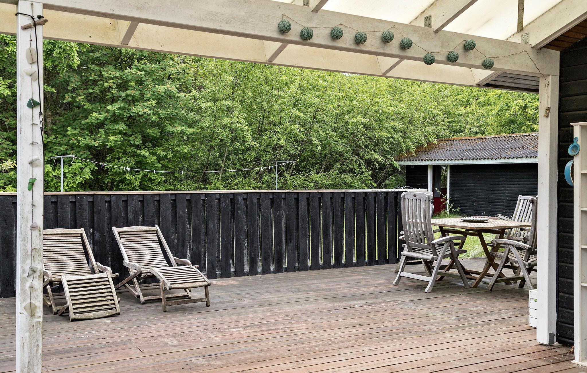 Til huset hører en dejlig, stor have med masser af plads og legeredskaber, som børnene kan boltre sig med på de varme sommerdage. Alt imens kan de voksne nyde solen på terrassen, der er delvist overdækket, så I også kan finde skygge til at læse en avis. Og måske I skal købe lidt lækkert med hjem til grillen?