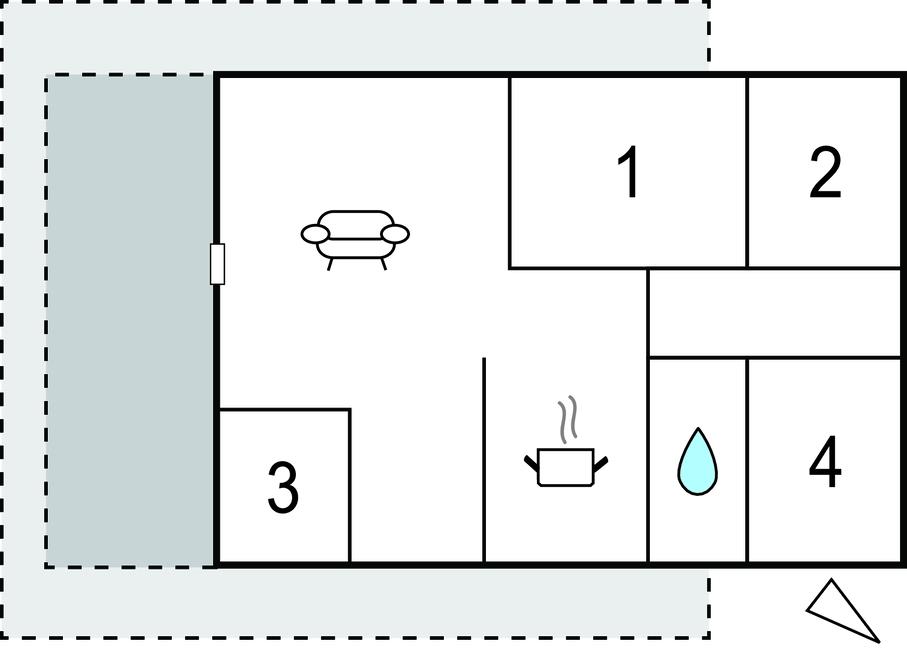 Opholdsstue - 1 Soveplads. (Sofa, madras eller lignende).