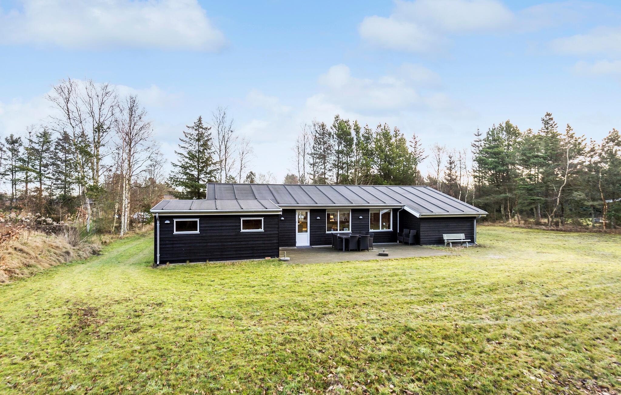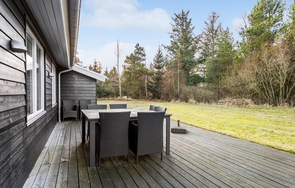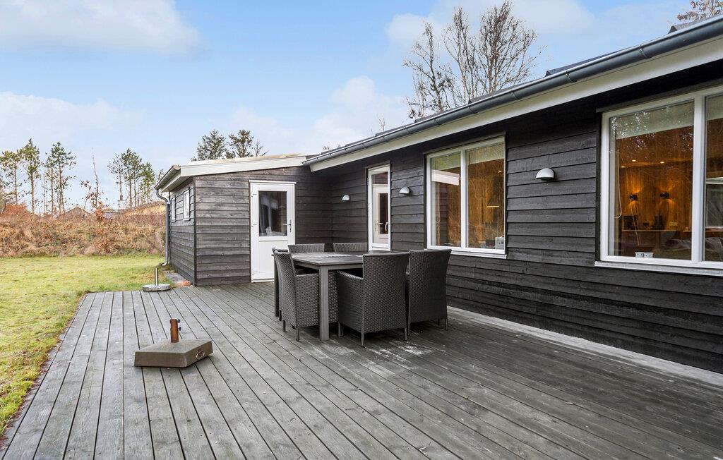 Den store terrasse fordeler sig på begge sider af huset, så I kan finde sol og skygge hele dagen. Den store grund er omgivet af træer, så I har jeres egen stille oase med god plads til boldspil og uforstyrret leg.