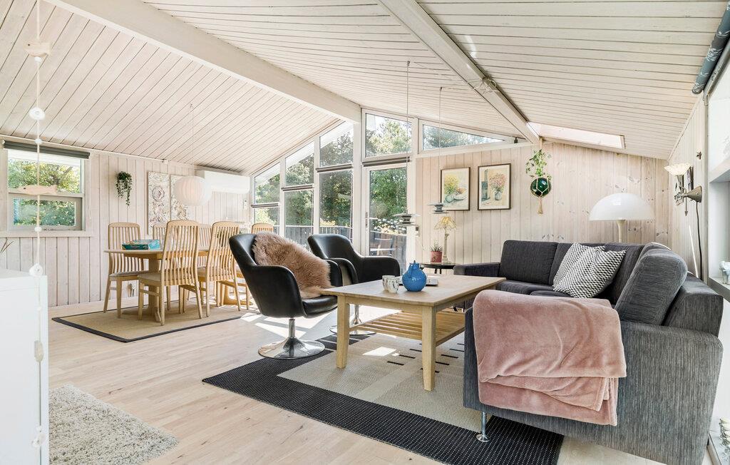 Velkommen til dette dejlige hus, der ligger på en stor og dejlig grund i det hyggelige sommerhusområde ved Bratten Strand. Huset er lyst og pænt indrettet med loft til kip, velholdte træpaneler og dejlige lysindfald gennem de store vinduespartier, der samtidig giver en fin udsigt til det grønne. Den åbne stue er husets hjerte med pæn kunst på væggene, der sammen med de gode møbler skaber en rar, hjemlig atmosfære, det er nemt at slappe af i. Køkkenet er veludstyret, så tag jer blot god tid til at kræse om livretterne, inden der dækkes op til en hyggelig aftensmad ved spisebordet af træ.